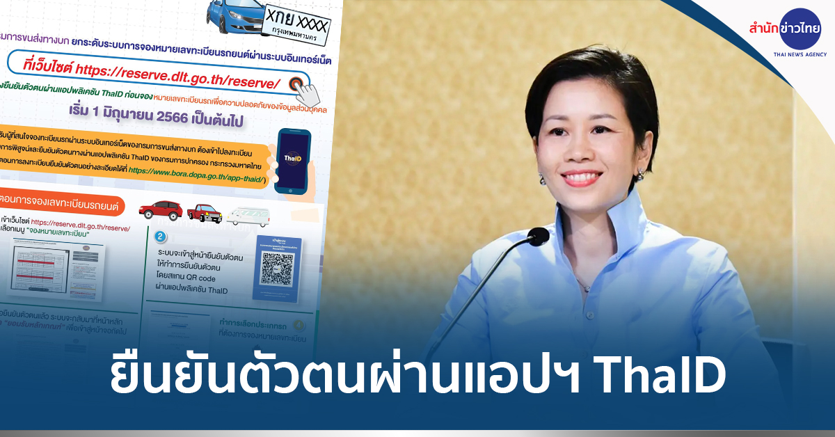 ทำเนียบรัฐบาล 1 มิ.ย-รองโฆษกรัฐบาล เผย ตั้งแต่วันนี้เป็นต้นไป กรมการขนส่งทางบกยกระดับความปลอดภัยข้อมูลส่วนบุคคลประชาชนที่ต้องการจองทะเบียนรถออนไลน์ ต้องยืนยันตัวตนผ่านแอปฯ ThaID