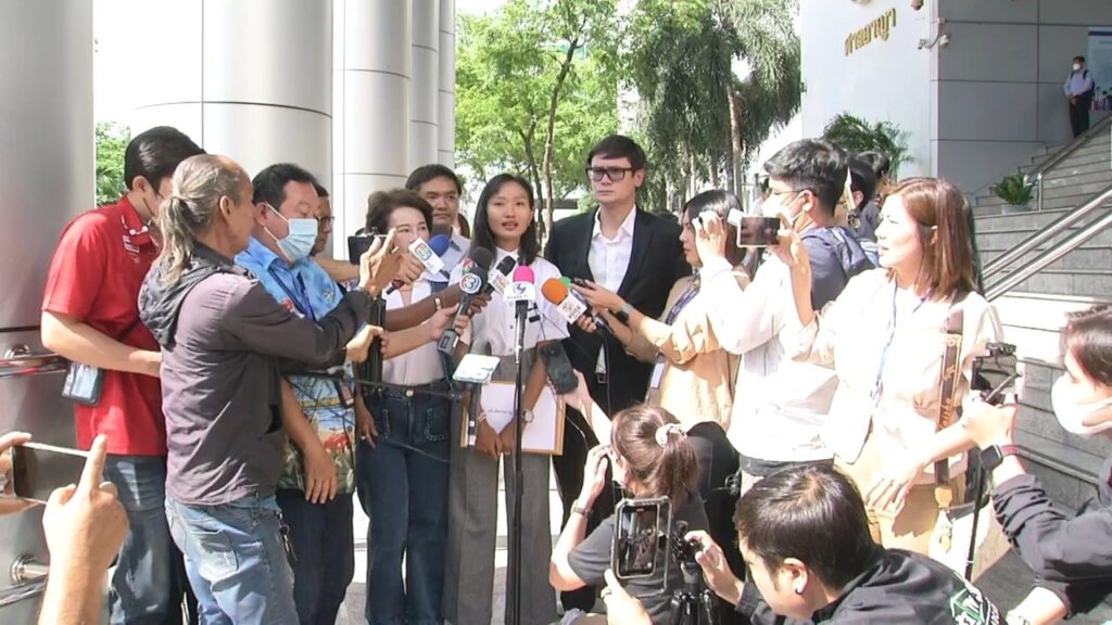 น.ส.ชลธิชา แจ้งเร็ว ว่าที่ ส.ส.ปทุมธานี พรรคก้าวไกล พร้อมด้วยนายรังสิมันต์ โรม ว่าที่ ส.ส. บัญชีรายชื่อพรรคก้าวไกล และนางอมรัตน์ โชคปมิตต์กุล ร่วมยื่นหนังสือต่อคณะกรรมการตุลาการศาลยุติธรรม (ก.ต.) เพื่อตรวจสอบทางวินัย ผู้พิพากษาศาลอาญา