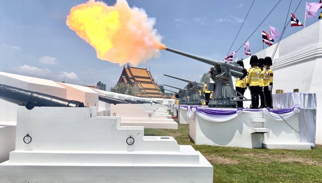 กรุงเทพฯ 3 มิ.ย. – 3 เหล่าทัพ ยิงสลุตหลวง 21 นัด เพื่อเฉลิมพระเกียรติสมเด็จพระนางเจ้าฯ พระบรมราชินี เนื่องในโอกาสวันเฉลิมพระชนมพรรษา วันที่ 3 มิถุนายน 2566