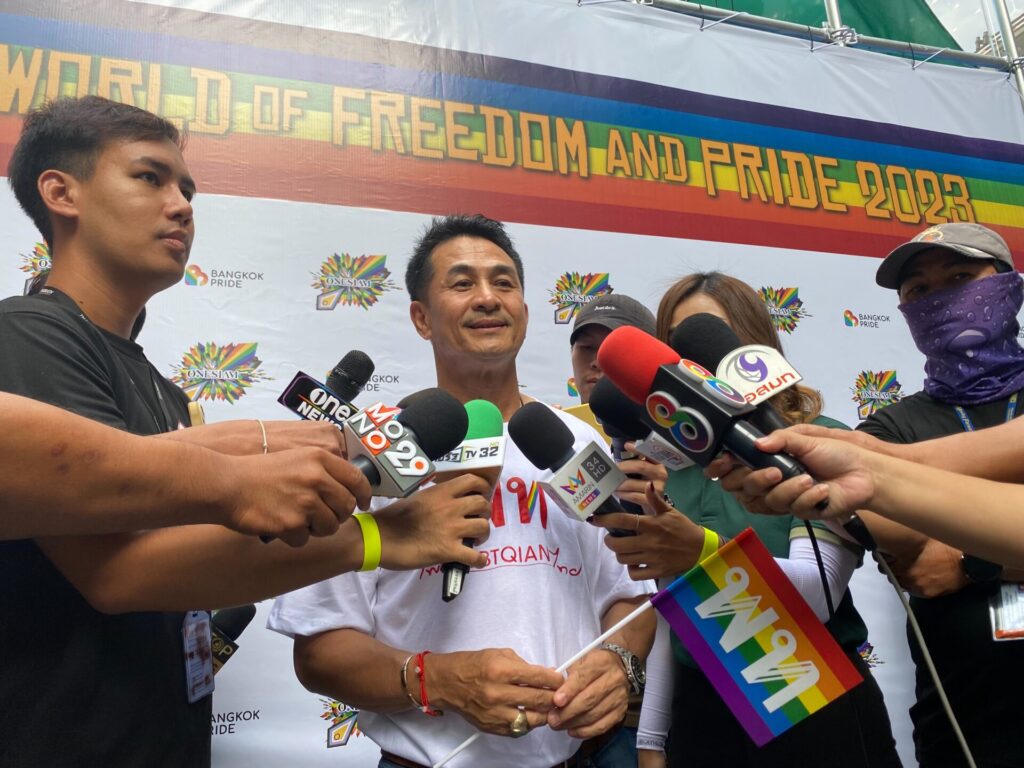 นพ.ชลน่าน ศรีแก้ว หัวหน้าพรรคเพื่อไทย ให้สัมภาษณ์ก่อนเข้าร่วมงาน Bangkok Pride 2023 ที่บริเวณลานศูนย์การค้าสนามดิสคัฟเวอรี่ ว่า เดือนนี้ pride พรรคให้ความคัญ วันนี้ พรรคก็ร่วมขบวนด้วย และออกแถลงการณ์สนับสนุนความเท่าเทียม ความหลากหลายทางเพศ และพรรคเพื่อไทยพร้อมสนับสนุน พ.ร.บ.สมรสเท่าเทียม ที่ยังค้างในสภา ซึ่งรัฐบาลใหม่จะต้องผลักดัน เรื่องที่ให้ความสำคัญเพื่อให้เกิดความเท่าเทียม ที่สำคัญสิทธิในการสมรส