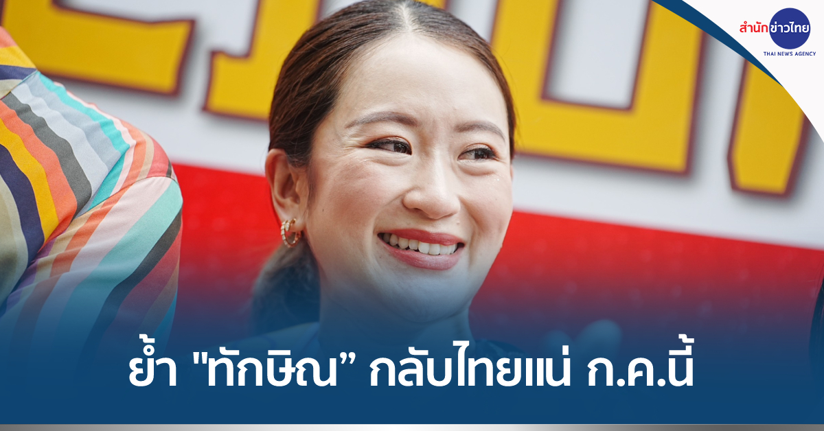 นางสาวแพทองธาร ชินวัตร แคนดิเดตนายกรัฐมนตรีพรรคเพื่อไทย กล่าวถึงกรณีนายทักษิณ ชินวัตร จะเดินทางกลับประเทศไทยในวันไหนว่า ตอนนี้ยังไม่ทราบว่าวันไหน เมื่อทราบจะบอกกับสื่อมวลชนอย่างแน่นอน