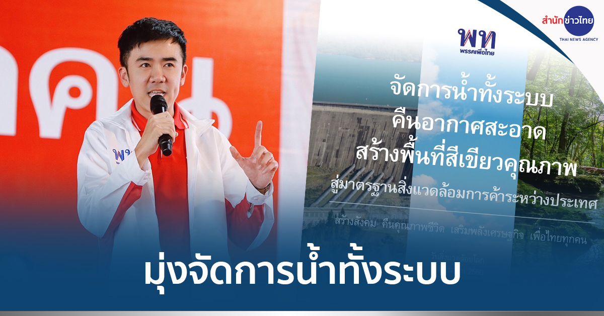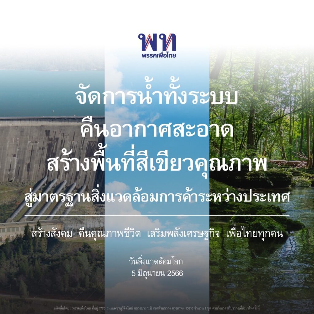 กทม. 5 มิ.ย.- ‘เพื่อไทย’ เดินหน้ารับมือปัญหาสิ่งแวดล้อม มุ่งจัดการน้ำทั้งระบบ คืนอากาศสะอาด สร้างพื้นที่สีเขียวคุณภาพ เพื่อคนไทยทุกคน