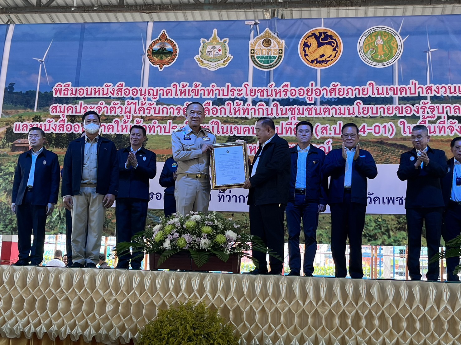 จากนั้นได้มีพิธีมอบหนังสืออนุญาตเข้าทำประโยชน์ หรืออยู่อาศัยภายในป่าสงวนแห่งชาติ ให้กับประชาชนที่ได้รับการคัดเลือกให้ทำกินในชุมชน และมอบหนังสืออนุญาตให้เข้าทำประโยชน์ในเขตปฏิรูปที่ดิน ( ส.ป.ก. 4-01) กับประชาชน ป่าเขาโปลกหล่น ต.ทุ่งสมอ และ ต.แคมป์สน อ.เขาค้อ รวมจำนวน 231 คน พื้นที่ 261 แปลง รวม 1,722 ไร่
