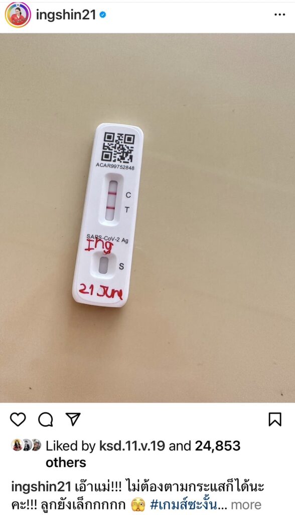 ผู้สื่อข่าวรายงานว่า วันนี้ (21 มิ.ย.) น.ส.แพทองธาร ชินวัตร หัวหน้าครอบครัวเพื่อไทยและแคนดิเดตนายกรัฐมนตรีพรรคเพื่อไทย โพสต์รูปภาพผลตรวจเอทีสองขีด ผ่านอินสตาแกรมส่วนตัว โดยระบุข้อความว่า “เอ๊าแม่!!! ไม่ต้องตามกระแสก็ได้นะคะ!!! ลูกยังเล็กกกกก #เกมส์ซะงั้น เจ็บคอตั้งแต่วันอาทิตย์ จิ้มทุกวันไม่เจอ เจอเช้านี้ งงเลย อะไรก็ได้ ขอให้ 2 จิ๋วที่บ้านไม่ติดพออออ”