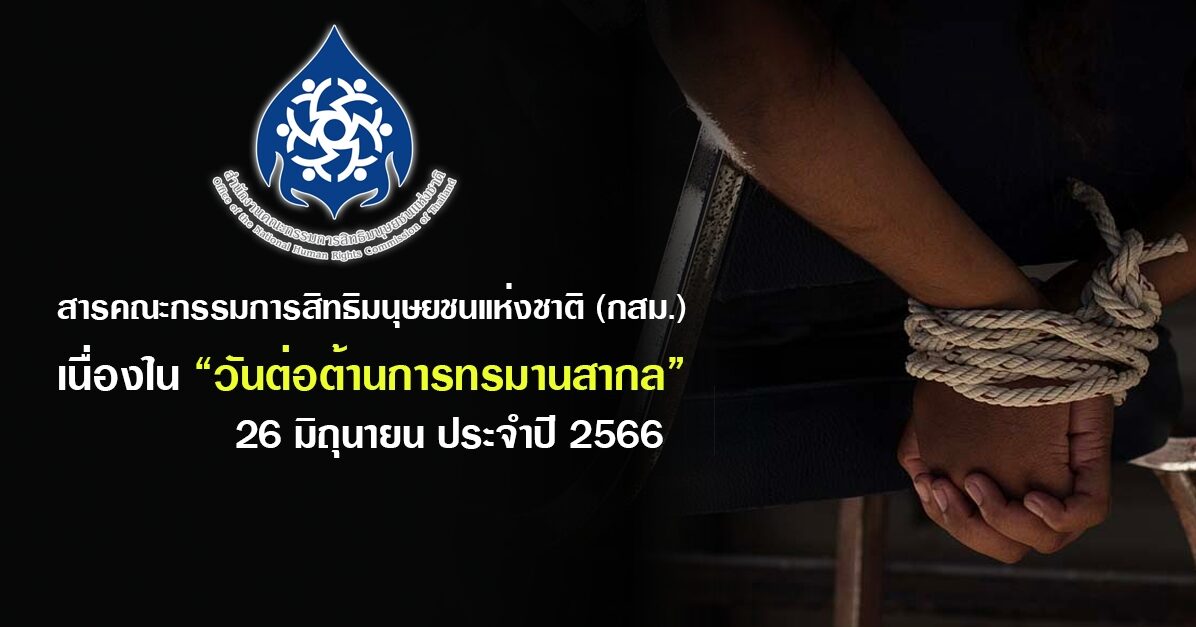 คณะกรรมการสิทธิมนุษยชนแห่งชาติ ส่งสารเนื่องในวันต่อต้านการทรมานสากล 26 มิถุนายน ซึ่งถูกกำหนดขึ้นโดยองค์การสหประชาชาติ ให้เป็นวันช่วยเหลือเหยื่อจากการทรมานสากล กสม. ขอยืนยันถึงหลักสิทธิและเสรีภาพในชีวิตและร่างกายของทุกคนที่จะต้องไม่ตกอยู่ภายใต้การทรมาน การปฎิบัติหรือการลงโทษอื่นที่โหดร้าย ไร้มนุษยธรรม หรือที่ย่ำยีศักดิ์ศรี และขอให้ทุกภาคส่วนได้ร่วมมือกันขับเคลื่อนและขจัดอุปสรรคในการบังคับใช้กฎหมายป้องกันการทรมานและบังคับสูญหาย