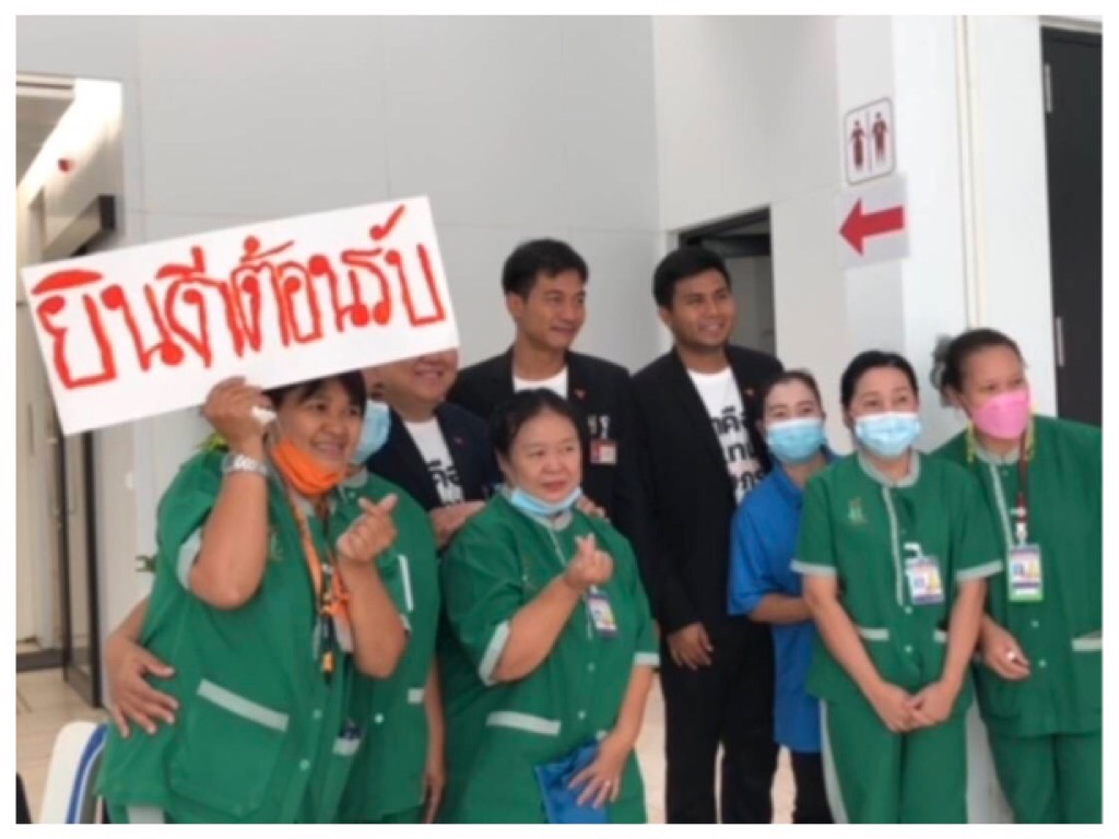 นายพิธา ลิ้มเจริญรัตน์ ส.ส.บัญชีรายชื่อและหัวหน้าพรรคก้าวไกล พร้อมด้วย ส.ส.ก้าวไกล รวม 150 คน เดินทางด้วยรถบัสออกจากตึกไทยซัมมิท มายังอาคารรัฐสภา เพื่อรายงานตัว ส.ส.อย่างพร้อมเพรียงกัน ซึ่ง ส.ส.ทุกคนสวมเสื้อยืดคอกลมสีขาว สกรีนคำว่า ‘เราคือผู้แทนราษฎร เรามาจากประชาชน’ และใส่สูทหรือแจ็กเก็ตทับอีกหนึ่งชั้น โดยเดินจากบริเวณด้านหน้าประตูทางเข้าอาคารเข้ามาพร้อมกัน และทันทีที่นายพิธาเดินทางมาถึงชั้น B1 ซึ่งเป็นสถานที่รายงานตัว มีเจ้าหน้าที่สภามารอและส่งเสียงกรี๊ดต้อนรับ ขณะที่เจ้าหน้าที่พนักงานทำความสะอาดของรัฐสภาก็ได้ชูป้าย ‘ยินดีต้อนรับ’ ก่อนที่นายพิธาจะให้สัมภาษณ์ต่อสื่อมวลชนถึงประเด็นร้อนต่างๆ