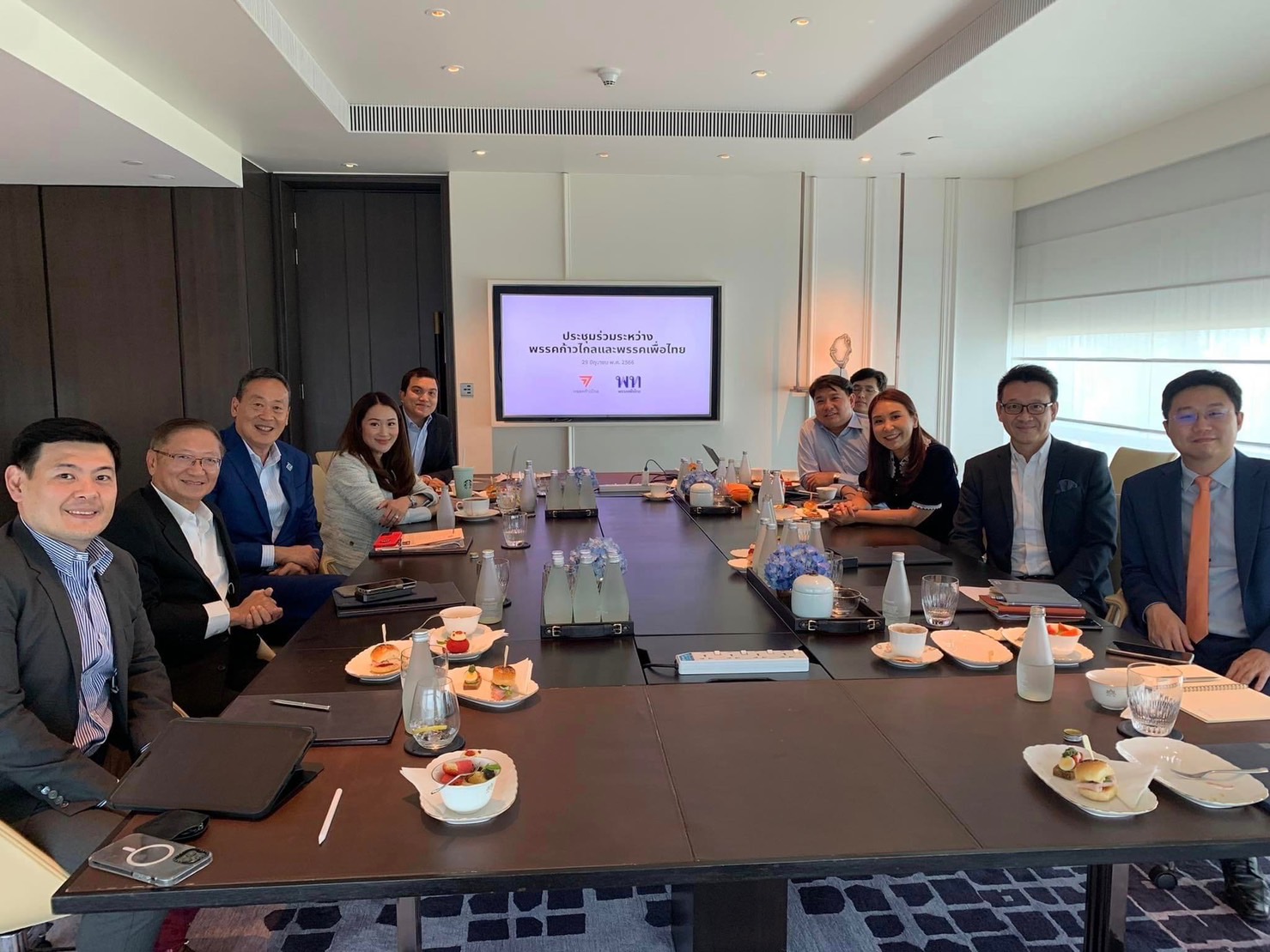 ผู้สื่อข่าวรายงานว่า เมื่อเวลาประมาณ 15.30 น. นางสาวแพทองธาร ชินวัตร แคนดิเดตนายกรัฐมนตรีพรรคเพื่อไทย ได้โพสต์คลิปวิดีโอลง สตอรี่อินสตาแกรม เป็นภาพการประชุมร่วมกันระหว่างพรรคก้าวไกลกับพรรคเพื่อไทย โดยมีเสียงนางสาวแพทองธาร บรรยายในคลิปว่า “นี่นะคะ ต้อนรับจากก้าวไกล” พร้อมแพนกล้องไปที่ผู้ร่วมประชุม 2 พรรค โดยตัวแทนพรรคก้าวไกล ประกอบด้วย นางสาวศิริกัญญา ตันสกุลและนายพิจารณ์ เชาวพัฒนวงศ์ รองหัวหน้าพรรคก้าวไกล นายวีระยุทธ์ กาญจน์ชูฉัตร นายวรภพ วิริยโรจน์ ทีมเศรษฐกิจพรรคก้าวไกล