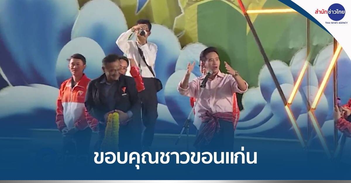 นายพิธา ขอบคุณทุกคะแนนเสียงที่ไว้วางใจ และมายืนยันในการทำหน้าที่ พร้อมทำงานเพื่อประชาชนทั้งคนรุ่นใหม่ รุ่นเก่า ทั้งที่เลือก และไม่เลือกพรรคก้าวไกล โดยจะตั้งใจทำงานให้ประชาชน พร้อมกับพูดยืนยันอีกว่าศัตรูของประเทศ คือความยากจน ความเลื่อมล้ำ รวมไปถึงยังเชิญชวนประชาชนคนขอนแก่น มาร่วมพัฒนาจังหวัดของตนเอง ก่อนที่นายพิธา จะเดินทางมาพบประชาชน มีรายงานว่า ทางหอการค้าจังหวัดขอนแก่น และสภาอุตสาหกรรมขอนแก่น ร่วมประชุมหารือพัฒนาเศรษฐกิจขอนแก่น ที่ห้องประชุมสนามบิน จ.ขอนแก่น อีกด้วย และจังหวัดขอนแก่น เป็นจังหวัดสุดท้าย ในการเดินสายขอบคุณประชาชน ของนายพิธา.-สำนักข่าวไทย