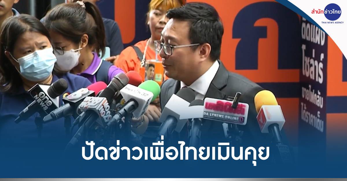 กทม. 2 ก.ค.-เลขาธิการพรรคก้าวไกล ปฏิเสธข่าว เพื่อไทยจะไม่เจรจาตำแหน่งประธานสภาผู้แทนราษฎร ย้ำขณะนี้มีสัญญาณที่ดีแน่นอน ขอให้ฟังการพูด หรือให้สัมภาษณ์จากแกนนำของสองพรรคร่วมรัฐบาลเท่านั้น