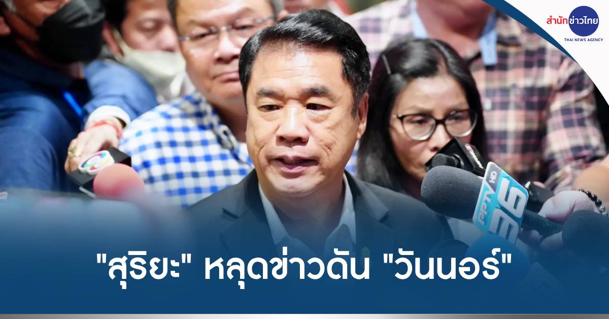 นายสุริยะ จึงรุ่งเรืองกิจ ส.ส. บัญชีรายชื่อพรรคเพื่อไทย กล่าวถึงกระแสข่าว พรรคเพื่อไทย เตรียมเสนอชื่อคนกลาง คือ นายวันมูหะมัดนอร์ มะทา หัวหน้าพรรค และ ส.ส.บัญชีรายชื่อ พรรคประชาชาติ ชิงตำแหน่งประธานสภาฯ ว่า เชื่อว่าเป็นทางออกที่ดี พรรคเราอยากจะเห็นการเมืองเดินหน้า เบื้องต้นเข้าใจว่า พรรคน่าจะมีการเสนอชื่อนี้ ส่วนคิดว่าพรรคก้าวไกลจะรับข้อเสนอนี้หรือไม่ สุริยะ ไม่ได้ตอบคำถามนี้