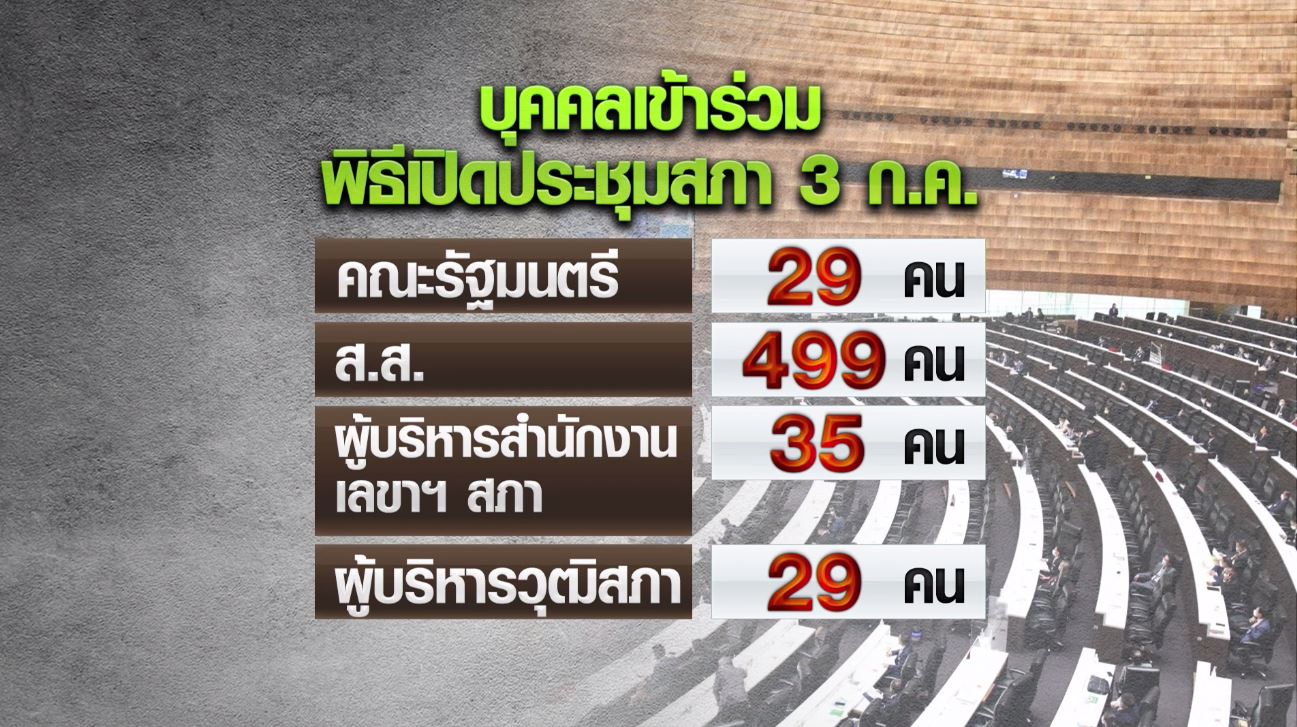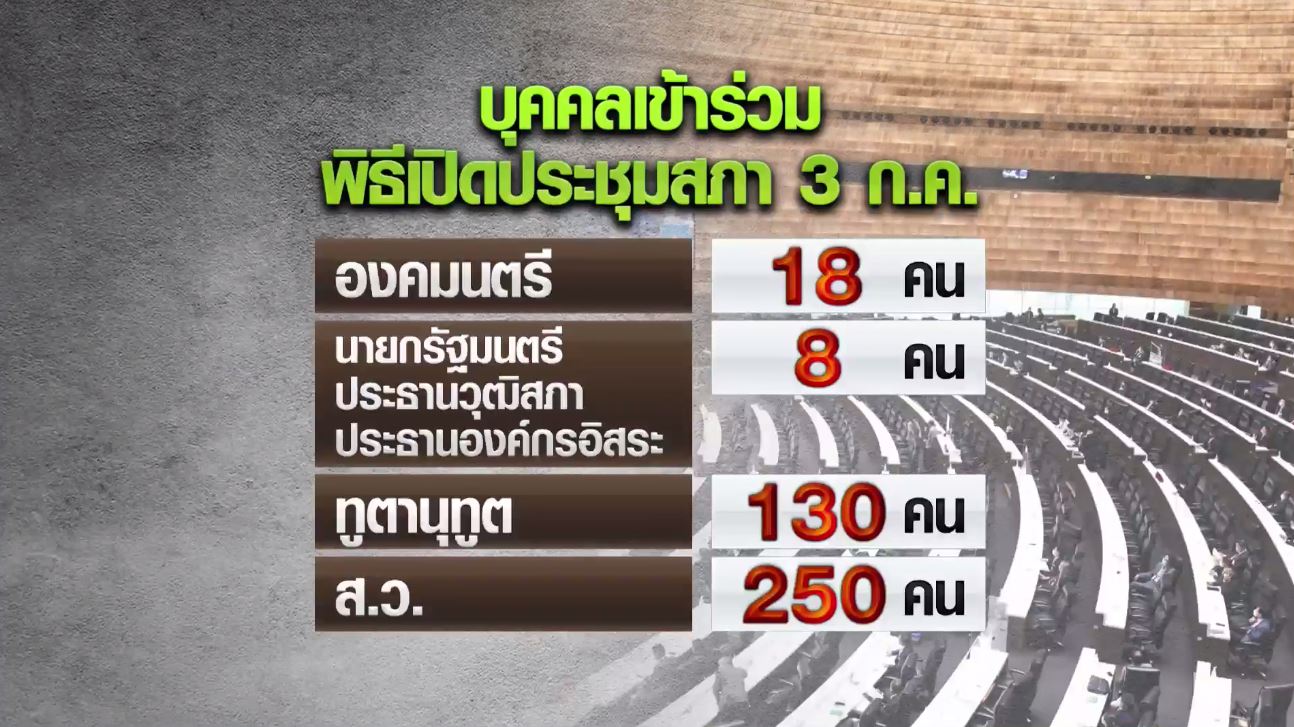 พระบาทสมเด็จพระเจ้าอยู่หัว และสมเด็จพระนางเจ้าฯ พระบรมราชินี เสด็จพระราชดำเนินไปทรงเปิดการประชุมรัฐสภา ณ โถงรัฐพิธี ชั้น 11 อาคารรัฐสภา ถนนสามเสน หลังจากเมื่อวันที่ 24 มิถุนายน 2566 ราชกิจจานุเบกษา เผยแพร่พระราชกฤษฎีกาเรียกประชุมรัฐสภา พ.ศ. 2566 ตั้งแต่วันที่ 3 กรกฎาคม 2566 เป็นต้นไป โดยมีบุคคลสำคัญเข้าร่วม ประกอบด้วย องคมนตรี 18 คน นายกรัฐมนตรี ประธานวุฒิสภา ประธานองค์กรอิสระ 8 คน ทูตานุทูต 130 คน ส.ว. 250 คน คณะรัฐมนตรี 29 คน ส.ส. 499 คน ผู้บริหารสำนักงานเลขาธิการสภาผู้แทนราษฎร 35 คน ผู้บริหารวุฒิสภา 29 คน ซึ่งสภาผู้แทนราษฎรชุดนี้เป็นชุดที่ 26 ของประเทศไทย โดยในวันที่ 4 กรกฎาคม 2566 จะเป็นการเปิดประชุมสภาผู้แทนราษฎรครั้งแรก เพื่อเลือกประธานสภาฯ และรองประธานสภาฯ