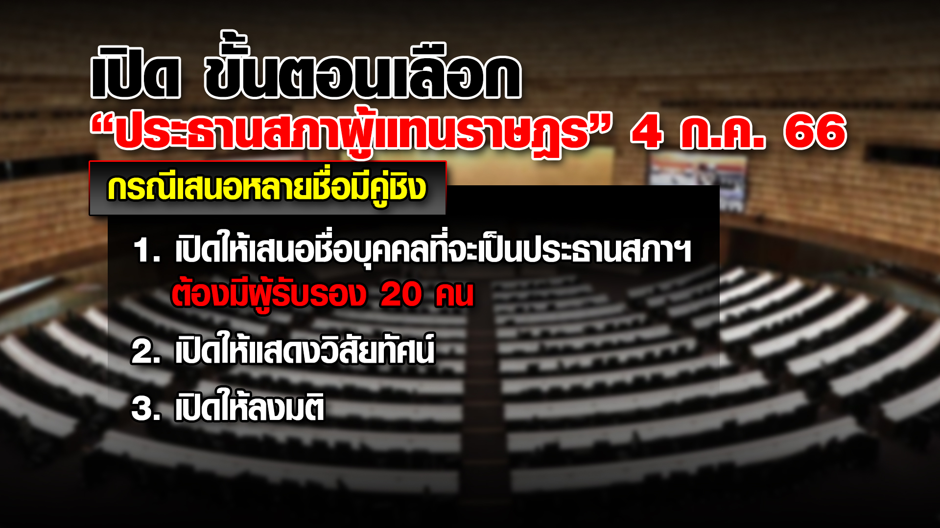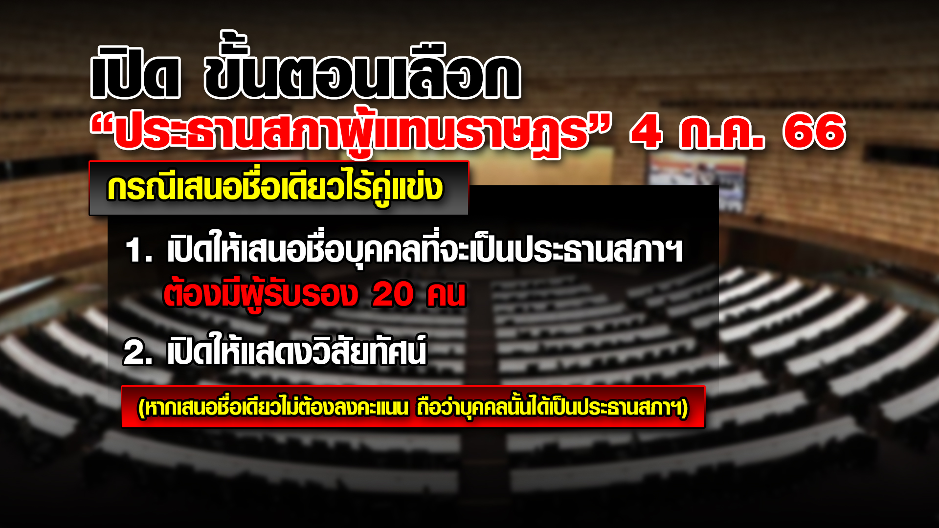 กรุงเทพฯ 3 ก.ค. – การประชุมสภาผู้แทนราษฎร นัดแรก วันพรุ่งนี้ (4 ก.ค.) ยังไม่มีประธานสภาฯ ที่มาจากการเลือกของสมาชิก ดังนั้น ขั้นตอนจะเริ่มจากที่ประชุมจะให้ ส.ส.ที่มีอายุสูงสุด ทำหน้าที่ประธานชั่วคราวของที่ประชุม