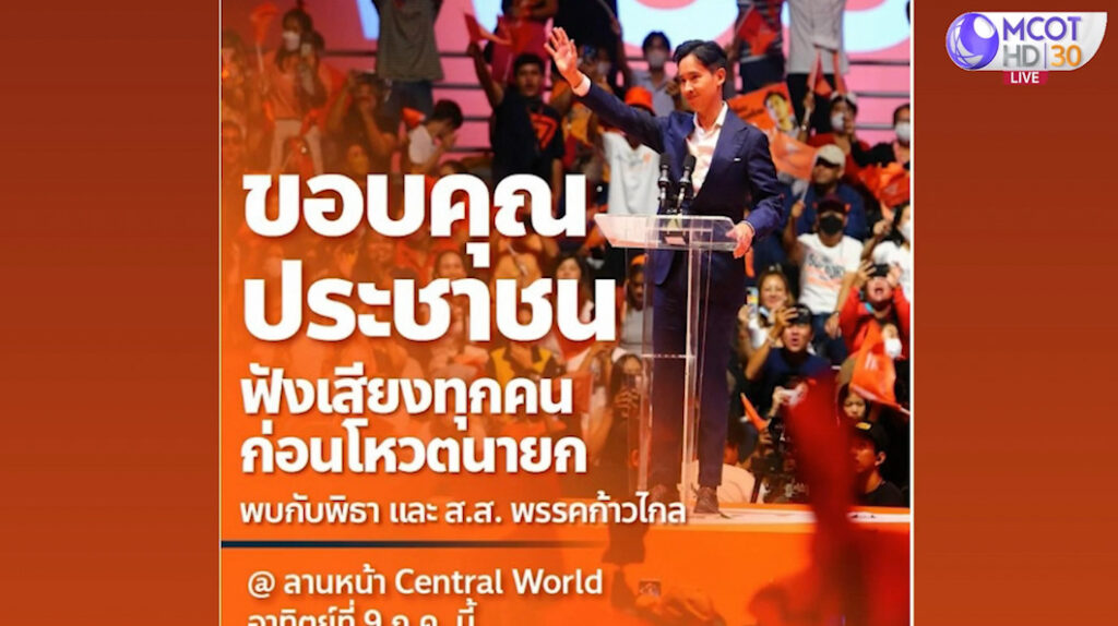 ขณะที่เพจ Pita Limjaroenrat – พิธา ลิ้มเจริญรัตน์ โพสต์ว่า 13 กรกฎาคมนี้ วาระสำคัญที่จะกำหนดทิศทางประเทศกำลังจะมาถึง นั่นคือการโหวตนายกรัฐมนตรี ภายใต้รัฐธรรมนูญ 2560 แม้ผลเลือกตั้งจะออกมาชัดเจนว่าพรรคก้าวไกลได้รับคะแนนมาเป็นอันดับหนึ่ง และเราเดินหน้าจัดตั้งรัฐบาล จนได้พรรคร่วม 8 พรรค ที่ได้รับฉันทามติจากประชาชนรวม 27 ล้านเสียง หรือ 72% ของผู้ใช้สิทธิ์เลือกตั้ง แต่เรายังคงต้องรอการตัดสินใจของวุฒิสมาชิก แต่ผมเชื่อมั่นว่าสมาชิกรัฐสภาทุกท่านจะฟังเสียงประชาชน เย็นวันอาทิตย์ 9 ก.ค. เชิญชวนทุกท่านมาเจอกันที่ลานหน้าเซ็นทรัลเวิลด์ 16.30 น. เป็นต้นไป.-สำนักข่าวไทย