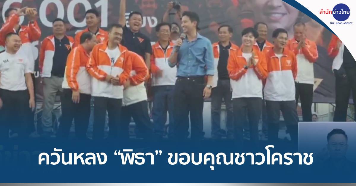นครราชสีมา 9 ก.ค.-“พิธา ลิ้มเจริญรัตน์”แคนดิเดตนายกรัฐมนตรี เมื่อวานนี้ได้ลงพื้นที่นครราชสีมา สักการะย่าโม ขึ้นรถแห่ขอบคุณชาวโคราช พร้อมเปิดปราศรัยคนฟังแน่น เย็นวันนี้มีกำหนดพบปะประชาชนที่ลานหน้าเซ็นทรัลเวิลด์