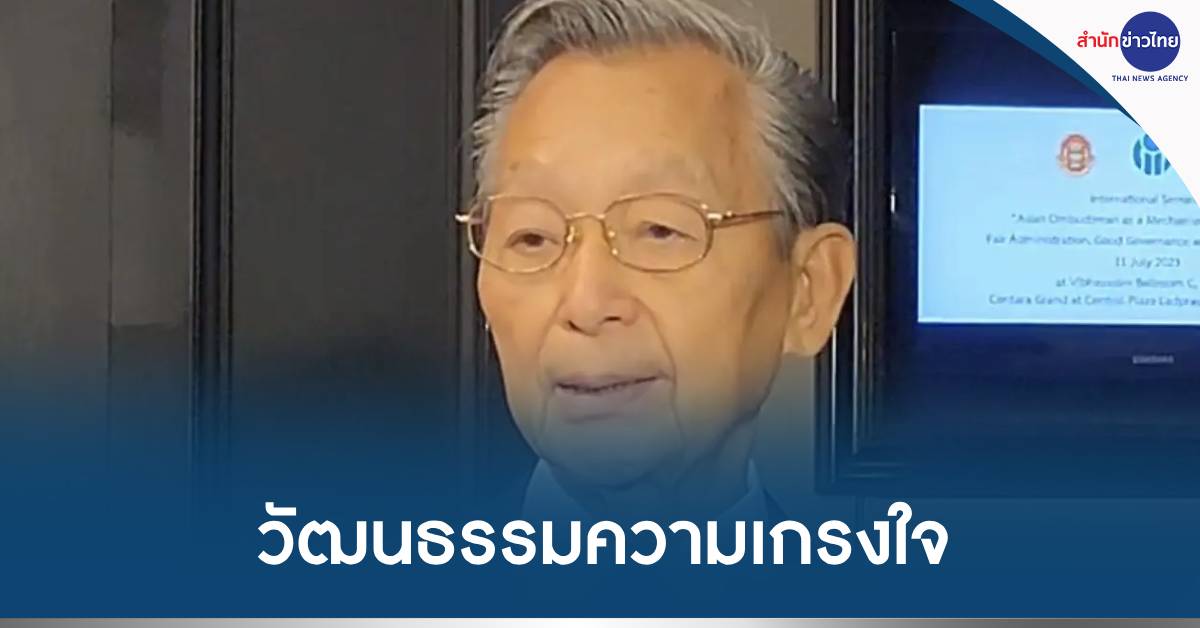 “ประเทศไทยมีวัฒนธรรมเรื่องความเกรงใจ จึงทำให้ผู้ที่ละเมิดหลัก นิติธรรมต้องเข้าสู่กระบวนการยุติธรรมหรือติดคุกไปหลายคน ตั้งแต่ระดับนายกรัฐมนตรี รัฐมนตรี นายตำรวจชั้นผู้ใหญ่ ไปจนถึงผู้บริหารและผู้จัดการธนาคาร เป็นตัวอย่างที่ชี้ให้เห็นว่าประเทศไทยมีประสบการณ์ที่ต่างจากประเทศอื่น ทำให้ภาระผู้ตรวจงานแผ่นดินทำงานหนัก รัฐธรรมนูญบัญญัติไว้ชัดเจนว่าคุณสมบัติของผู้ตรวจการแผ่นดินต้องเป็นผู้มีความซื่อสัตย์สุจริตเป็นที่ประจักษ์ ต้องเป็นคนดี แต่กฎหมายที่ดีอย่างเดียวไม่เพียงพอหรือคนดีอย่างเดียวไม่พอ มันต้องไปด้วยกัน ที่สำคัญต้องมีความซื่อสัตย์สุจริต” นายชวน กล่าว