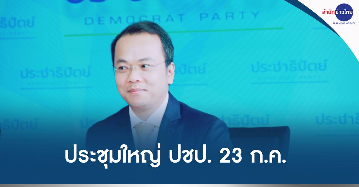 กทม. 16 ก.ค.-โฆษก ปชป. เผยพรรคจะจัดประชุมใหญ่วิสามัญ ครั้งที่ 2 ประจำปี 2566 ในวันอาทิตย์ที่ 23 ก.ค.นี้ เลือกตั้งคณะกรรมการบริหารพรรคชุดใหม่