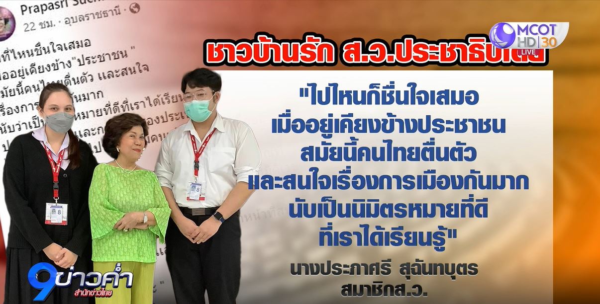 เฟซบุ๊ก “Prapasri Suchan tabutr” ของนางประภาศรี สุฉันทบุตร สมาชิกวุฒิสภา (ส.ว.) หนึ่งใน ส.ว. ที่เห็นชอบให้ นายพิธา ลิ้มเจริญรัตน์ ได้โพสต์ข้อความระบุว่า ไปที่ไหนชื่นใจเสมอ เมื่ออยู่เคียงข้าง “ประชาชน” สมัยนี้คนไทยตื่นตัว เเละสนใจ เรื่องการเมืองกันมากนับว่าเป็นนิมิตหมายที่ดีที่เราได้เรียนรู้ประชาธิปไตยเเละการปกครองประเทศ ไปด้วยกันช่วงนี้ไปที่ไหนก็มีคนเข้ามาคุย ไปซื้อของตามห้างสรรพสินค้าในกรุงเทพฯ ก็มีคนมาทักทาย