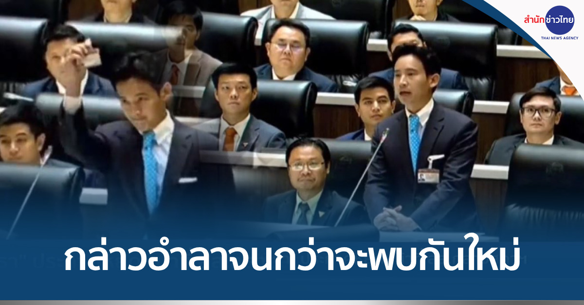 รัฐสภา 19 ก.ค. – “พิธา” กล่าวอำลาในที่ประชุมรัฐสภา เผยจนกว่าเราจะพบกันใหม่ ฝากเพื่อนสมาชิกดูแลพี่น้องประชาชน หลังจากศาล รธน. มีหนังสือแจ้งสภาให้ “พิธา” หยุดปฏิบัติหน้าที่ สส.
