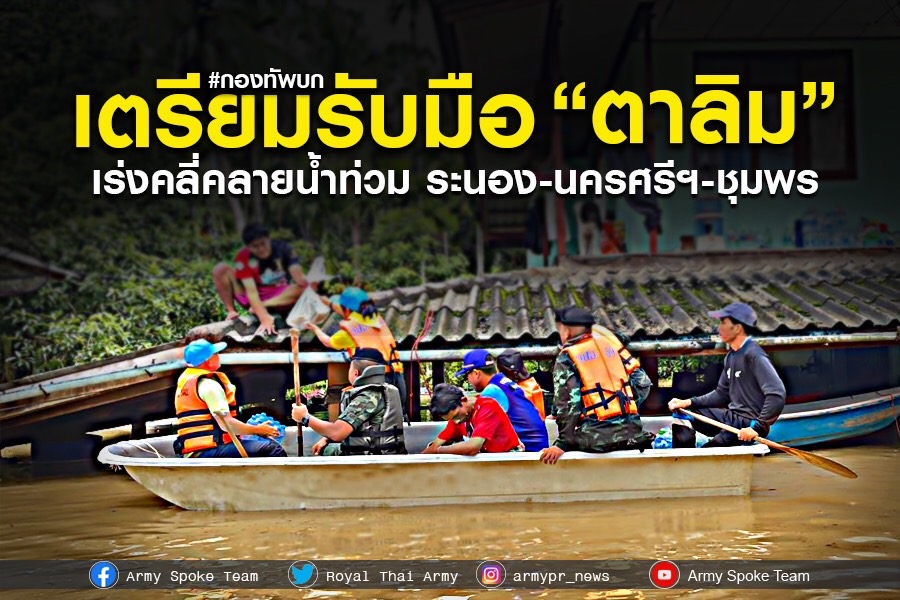 กองทัพบก 19 ก.ค. – ทบ. ให้หน่วยทหารเตรียมรับมือ “โซนร้อนตาลิม” กำชับ ทัพภาค 4 เร่งคลี่คลายน้ำท่วมระนอง นครศรีธรรมราช และชุมพร