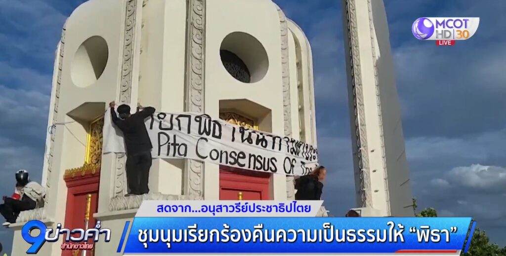 หลังจากมวลชน ทราบว่าที่ประชุมรัฐสภามีมติไม่ให้เสนอชื่อ พิธา ลิ้มเจริญรัตน์ เป็นนายกรัฐมนตรี รอบที่ 2 ก็ได้ส่งเสียงโห่และแสดงความไม่พอใจ มีบางส่วนนำป้ายผ้าระบุข้อความว่า “นายกพิธาฉันทามติประชาชน” ผูกไว้ที่อนุสาวรีย์ประชาธิปไตย ซึ่งการชุมนุมในวันนี้มุ่งเน้นการปราศรัยเนื้อหาโจมตี ไม่เห็นด้วยกับการลงมติโหวตนายกรัฐมนตรีของวุฒิสมาชิกที่สวนทางกับคะแนนเสียงของประชาชน รวมถึงมติของคณะตุลาการศาลรัฐธรรมนูญ ให้นายพิธา หยุดปฏิบัติหน้าที่สมาชิกสภาผู้แทนราษฎรชั่วคราว และการประชุมรัฐสภาที่มีมติไม่ให้เสนอชื่อนายพิธา เป็นนายกรัฐมนตรีเป็นรอบที่ 2
