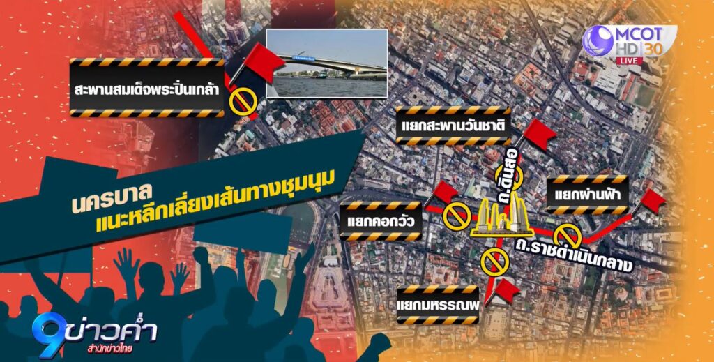 ส่วนการดูแลความสงบเรียบร้อย และอำนวยความสะดวกด้านการจราจรของประชาชนบริเวณนี้ ได้มอบหมายให้กองบัญชาการตำรวจนครบาลดูแล จัดกำลังพลทั้งในและนอกเครื่องแบบไว้จำนวน 3 กองร้อย เพื่อดูแลพื้นที่โดยรอบ และกำหนดให้ผู้ชุมนุมคืนพื้นที่ในเวลา 21.00 น. และพื้นที่ต้องคืนสภาพเดิมในเวลา 22.00 น. พร้อมแนะประชาชนหลีกเลี่ยงเส้นทางบริเวณอนุสาวรีย์ประชาธิปไตย ถนนราชดำเนินกลาง ถนนดินสอ และสะพานสมเด็จพระปิ่นเกล้า พร้อมแนะนำให้ใช้เส้นทาง อาทิ ถนนราชดำเนินนอก ถนนตีทองสะพานพระราม 8 ถนนตะนาว สะพานพระปกเกล้า และถนนเฟื่องนคร