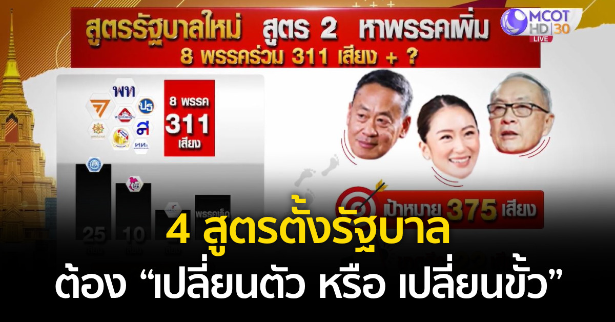 อสมท 20 ก.ค. – I’ll be back ที่มีความหมายว่า “ผมจะกลับมา” ของนายพิธา ลิ้มเจริญรัตน์ เรียกว่ายังต้องใช้ความพยายาม สู้ยิบตา เพราะตอนนี้นอกจากถูกศาลสั่งหยุดปฏิบัติหน้าที่ สส. เข้าสภาไปโหวตให้ใครไม่ได้ ยังอาจถูกเพื่อไทยและพรรคร่วมเท พลิกขั้วแกนนำตั้งรัฐบาลใหม่ เพื่อให้ประเทศไทยได้มีนายกรัฐมนตรีคนที่ 30 สูตรตั้งรัฐบาลไหนเป็นไปได้บ้าง ทีมข่าวค่ำ สำนักข่าวไทย รวบรวมมาให้แล้ว.-สำนักข่าวไทย