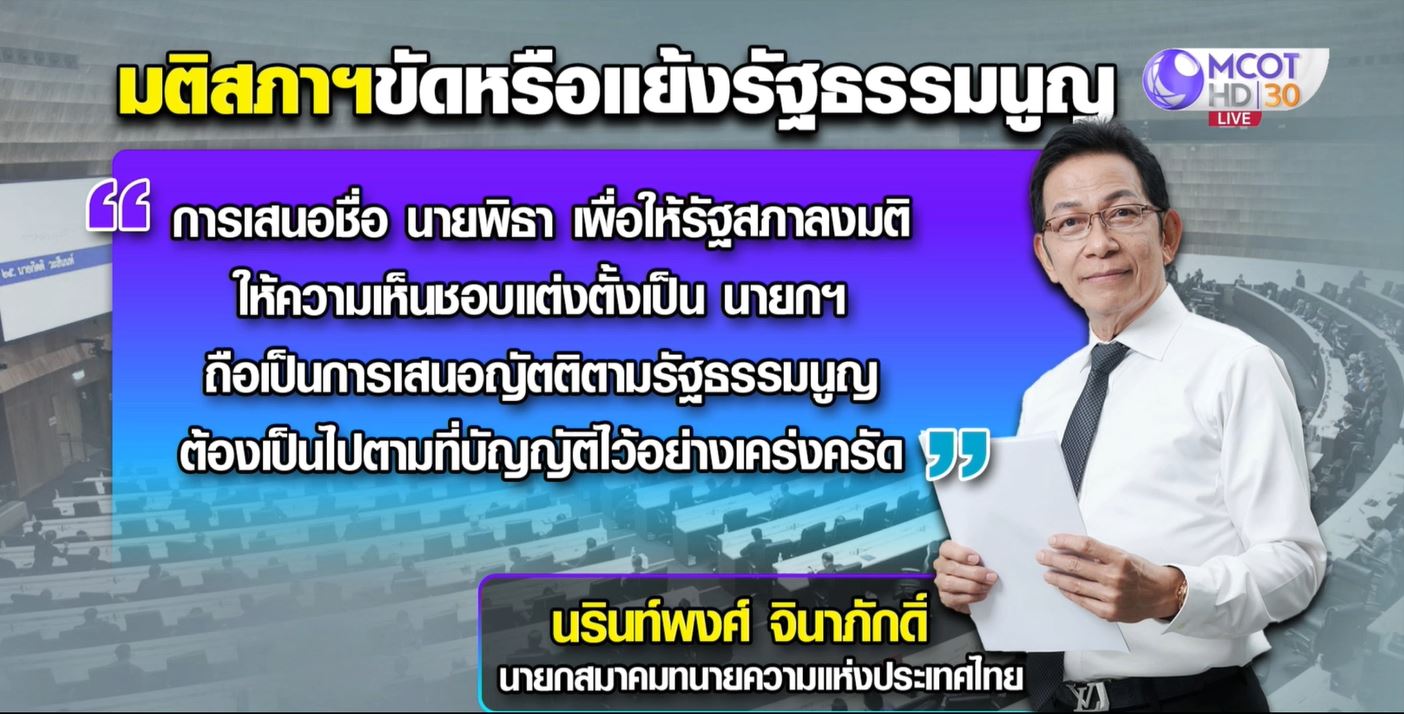 กรุงเทพฯ 20 ก.ค. – สมาคมทนายความแห่งประเทศไทย เผยเสนอชื่อ “พิธา ลิ้มเจริญรัตน์” เป็นนายกฯ ซ้ำได้ เหตุรัฐธรรมนูญไม่ได้จำกัดไว้ สมาชิกรัฐสภาที่โหวตมีสิทธิยื่นคำร้องต่อศาลรัฐธรรมนูญ วินิจฉัยญัตติดังกล่าวได้