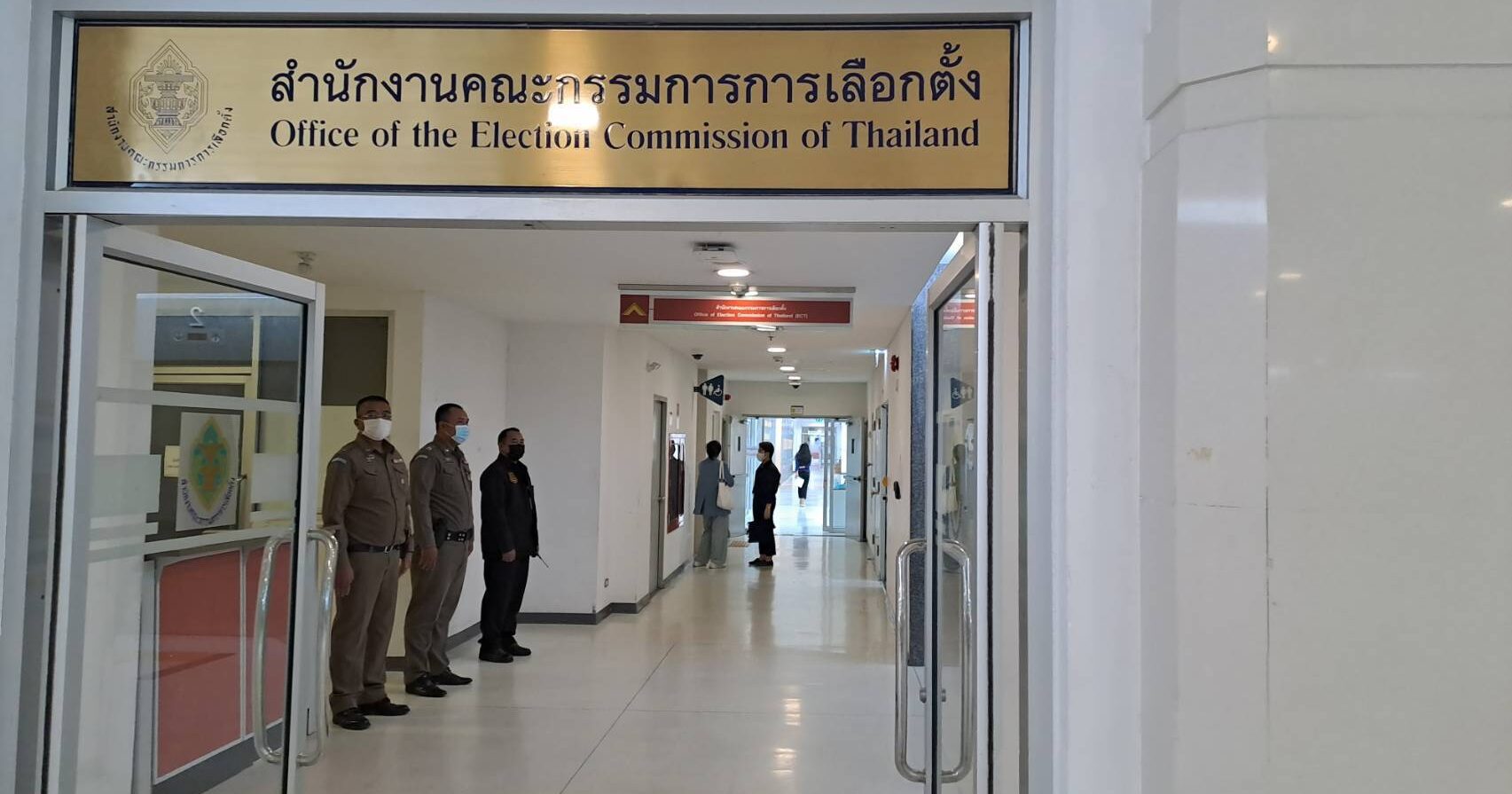กกต. วันนี้ (21 ก.ค.) ตร.เข้มรักษาความปลอดภัยห้องรับเรื่องสำนักงาน กกต. ที่ปิดประตูทางเข้า เพื่อคัดกรองบุคคลเข้า-ออก หลังชายบุกปาน้ำปลาร้าใส่