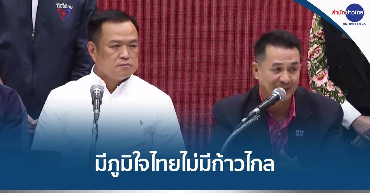 นายอนุทิน ชาญวีรกูล หัวหน้าพรรคภูมิใจไทย ขอบคุณพรรคเพื่อไทยที่เชิญมาพบเพื่อแก้ปัญหาบ้านเมือง วันนี้มารับทราบเจตนารมณ์กับพรรคเพื่อไทย ซึ่งตรงกันคือ อยากให้ประเทศมีรัฐบาลมาบริหารประเทศให้เร็วที่สุด โดยพรรคภูมิใจไทยได้เสนอข้อกังวลของพรรคไป ยืนยันไม่สามารถทำงานกับพรรคก้าวไกลได้ ไม่ได้ขัดแย้งกับก้าวไกล แต่เป็นเพราะนโยบายและแนวคิดที่ไม่ตรงกัน แม้เพื่อไทยจะเป็นแกนนำจัดตั้งรัฐบาลก็ตาม และแม้ก้าวไกลจะลดเพดานไม่แตะ ม.112 ก็ไม่สามารถร่วมงานได้ ซึ่งหัวหน้าพรรคเพื่อไทยรับทราบเงื่อนไขแล้ว
