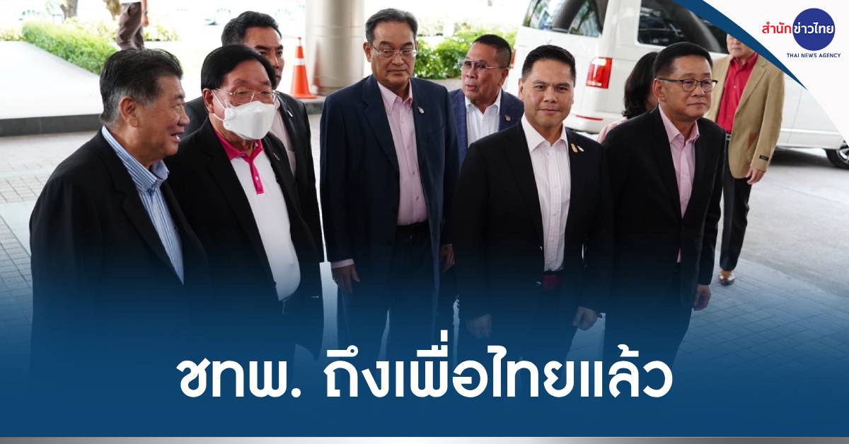 เพื่อไทย 23 ก.ค.-“วราวุธ” ควงแกนนำพรรคชาติไทยพัฒนา ถึงเพื่อไทยแล้ว ระบุยินดีมาเพื่อพูดคุยถึงแนวทางทำงานร่วมกัน