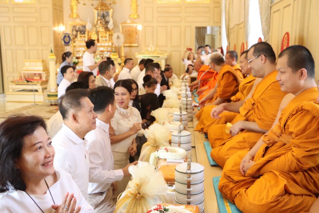 โดยคณะได้ร่วมถวายสังฆทาน ผ้าไตร ตาลปัตร เทียนพรรษา จตุปัจจัยไทยธรรม ปิ่นโต จากนั้นพระสงฆ์จำนวน 9 รูป จากวัดต่างๆใน กทม. ได้เจริญพระพุทธมนต์ เนื่องในวันคล้ายวันเกิดนายทักษิณ
