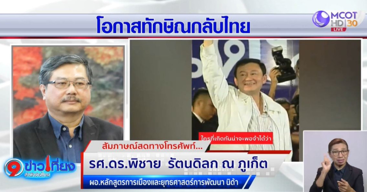 อสมท 31 ก.ค. – สัปดาห์นี้จะมีการโหวตเลือกนายกรัฐมนตรีครั้งที่ 3 ซึ่งจะเชื่อมโยงกับการที่ “ทักษิณ” จะกลับมาเมืองไทยหรือไม่ หลังจากก่อนหน้านี้ประกาศจะกลับมาในวันที่ 10 ส.ค. ไปคุยกับ รศ.ดร.พิชาย รัตนดิลก ณ ภูเก็ต ผอ.หลักสูตรการเมืองและยุทธศาสตร์การพัฒนา นิด้า .-สำนักข่าวไทย