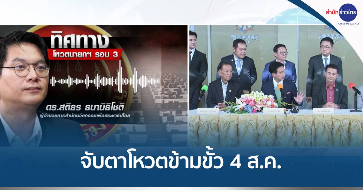 กทม. 31 ก.ค.-การโหวตเลือกนายกรัฐมนตรี วันที่ 4 ส.ค.นี้ หลายคนวิเคราะห์นัยสำคัญทางการเมือง ตามกระแสข่าวที่บอกว่าจะเป็นการจัดตั้งรัฐบาลข้ามขั้ว คือเพื่อไทย จะมีการจับมือกับพรรคภูมิใจไทย พลังประชารัฐ รวมไทยสร้างชาติ ตรงนี้ถูกจับตาว่ารัฐบาลใหม่จะอยู่ได้นานไหม และการตั้งรัฐบาลแบบข้ามขั้วนี้ จะนำไปสู่การชุมนุมต้านครั้งใหญ่เพราะเป็นการตั้งรัฐบาลขัดต่อประชามติผู้เลือกตั้ง ไปฟังความเห็นจาก ดร.สติธร ธนานิธิโชติ ผู้อำนวยการสำนักนวัตกรรมเพื่อประชาธิปไตย สถาบันพระปกเกล้า.-สำนักข่าวไทย