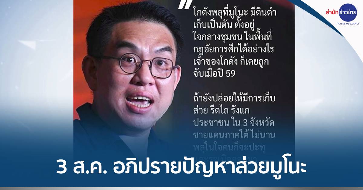 กทม. 1 ส.ค.-“วิโรจน์” สส.ก้าวไกล ประกาศผ่านเฟซบุ๊ก ปัญหาส่วยมูโนะ ปล่อยไว้ไม่ได้ ลั่นพร้อมอภิปรายเรื่องนี้ในสภา 3 ส.ค.นี้