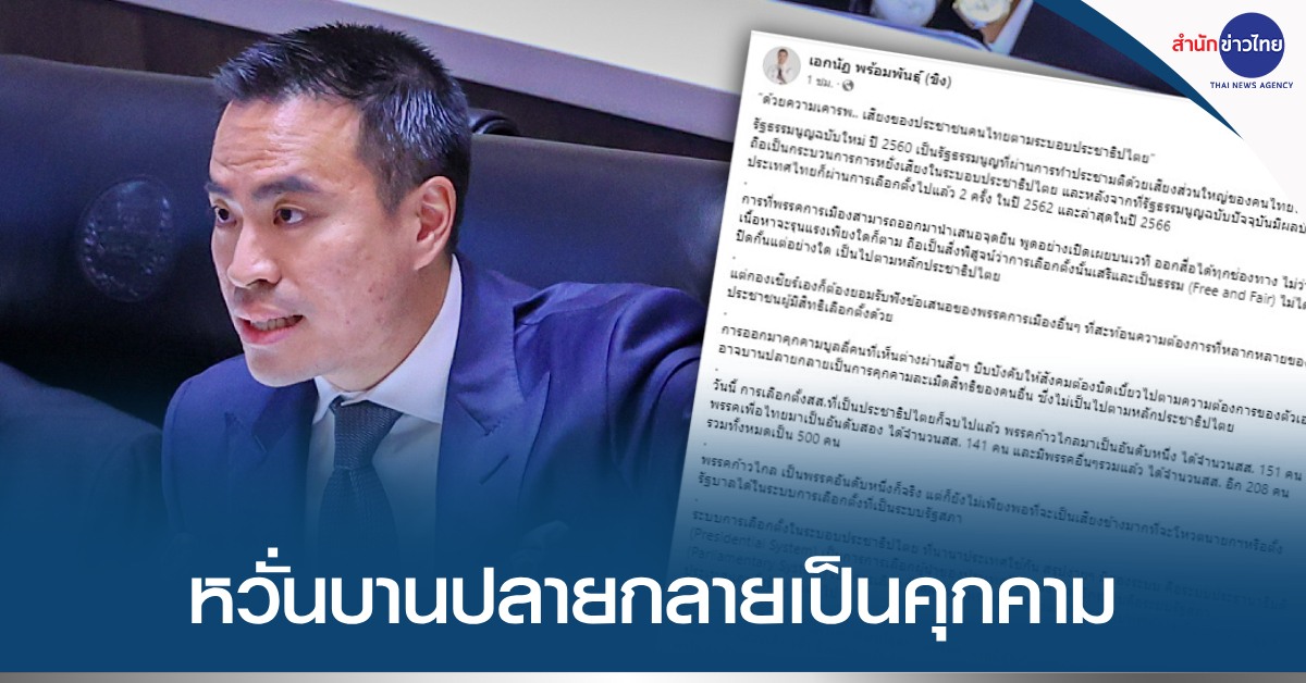 กรุงเทพฯ 5 ส.ค. – “เอกนัฏ” โพสต์เฟซบุ๊ก ระบุการเมืองไทยเป็นประชาธิปไตยในระบบรัฐสภาแบบ Hybrid System ต้องเสนอชื่อแคนดิเดตนายกฯ ก่อนการหาเสียงเลือกตั้ง แต่ไม่ใช่ว่าแคนดิเดตนายกฯ ของพรรคที่ได้เสียงมากที่สุดต้องได้เป็นนายกฯ การออกมาคุกคาม-บูลลี่คนที่เห็นต่าง หวั่นบานปลายและเข้าข่ายการคุกคามละเมิดสิทธิผู้อื่น ซึ่งไม่เป็นไปตามหลักประชาธิปไตย