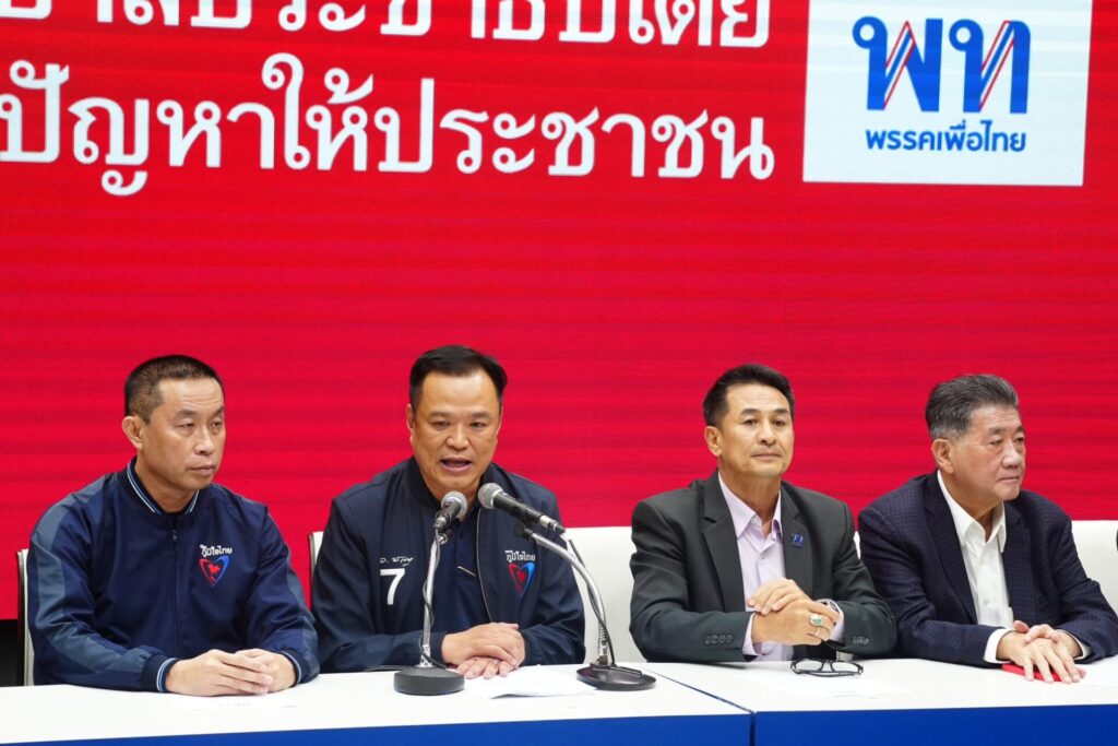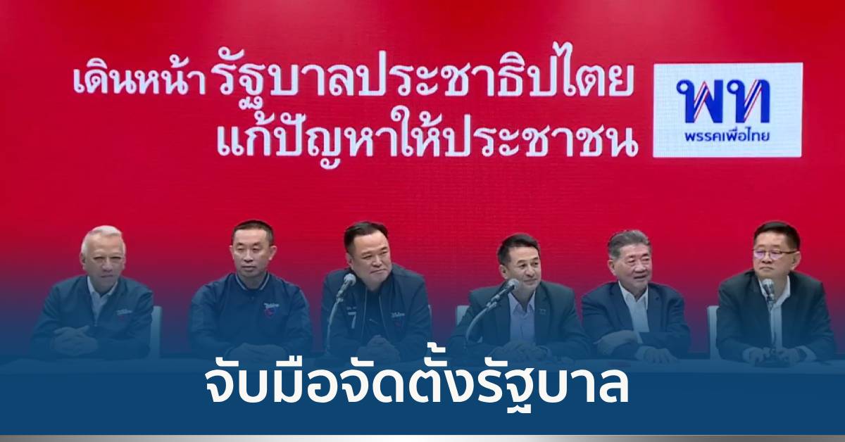พรรคเพื่อไทย 7 ส.ค.- “เพื่อไทย-ภูมิใจไทย” แถลงจัดตั้งรัฐบาล โวได้ 212 เสียงเกินกึ่งหนึ่งแล้ว “อนุทิน” ไม่เกี่ยงหากไร้พรรคสองลุงก็พร้อมจับมือต่อ ลั่นถอนฟ้อง “เศรษฐา” โจมตีนโยบายกัญชาแล้ว “ภูมิธรรม” เผยสัปดาห์นี้มีพรรคการเมืองตบเท้าร่วมตั้งรัฐบาลเพิ่ม
