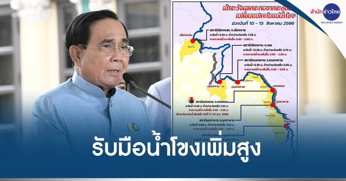 นางสาวรัชดา กล่าวว่า กองอำนวยการน้ำแห่งชาติ (กอนช.) ได้ติดตามสถานการณ์น้ำแม่น้ำโขง พบว่ามีปริมาณฝนตกหนักสะสมในลุ่มน้ำโขงตอนล่าง และบริเวณแขวงบอลิคำไซ สาธารณรัฐประชาธิปไตยประชาชนลาว ทำให้ระดับน้ำแม่น้ำโขงเพิ่มสูงขึ้นต่อเนื่อง ประกอบกับอิทธิพลของหย่อมความกดอากาศต่ำปกคลุมบริเวณประเทศเวียดนามตอนบนและประเทศจีนตอนใต้ ทำให้ประเทศไทยโดยเฉพาะภาคเหนือและภาคตะวันออกเฉียงเหนือ ตอนบนมีฝนตกหนักถึงหนักมาก ส่งผลให้ระดับน้ำในพื้นที่แม่น้ำโขงตอนล่าง มีแนวโน้มเพิ่มขึ้นอย่างต่อเนื่องในช่วงวันที่ 10-15 สิงหาคม 2566 โดย กอนช. ได้คาดการณ์แนวโน้มสถานการณ์น้ำ ดังนี้
