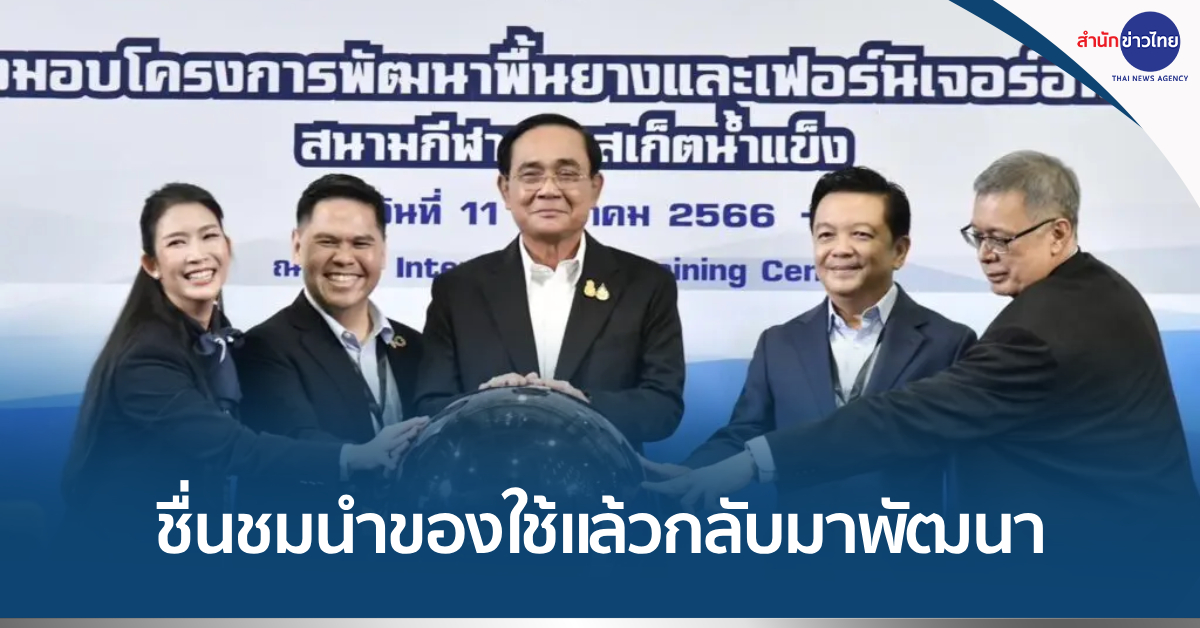 อิมพีเรียล เวิลด์ สำโรง 11 ส.ค. – นายกฯ เปิดงานพัฒนาพื้นยางและเฟอร์นิเจอร์อัพไซเคิล ชื่นชมส่วนเกี่ยวข้องนำของใช้แล้วมาใช้ให้เกิดประโยชน์ได้อีก ช่วยลดก๊าซเรือนกระจก อารมณ์ดี ชวนคนไทยยิ้มสยาม บอกสื่อไม่ต้องถาม ให้ไปเปิดเพลงคนไม่สำคัญฟังแทน