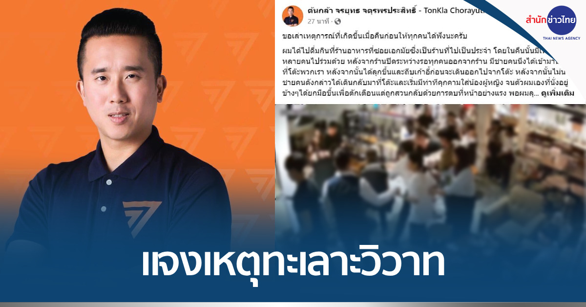 กทม. 12 ส.ค. – “จรยุทธ” สส.กทม. พรรคก้าวไกล แจงเหตุทะเลาะวิวาท ตอบโต้โดยสัญชาตญาณ แต่ในฐานะผู้แทนประชาชน ต้องโทษประชาชน และจะนำเรื่องนี้มาเป็นบทเรียน