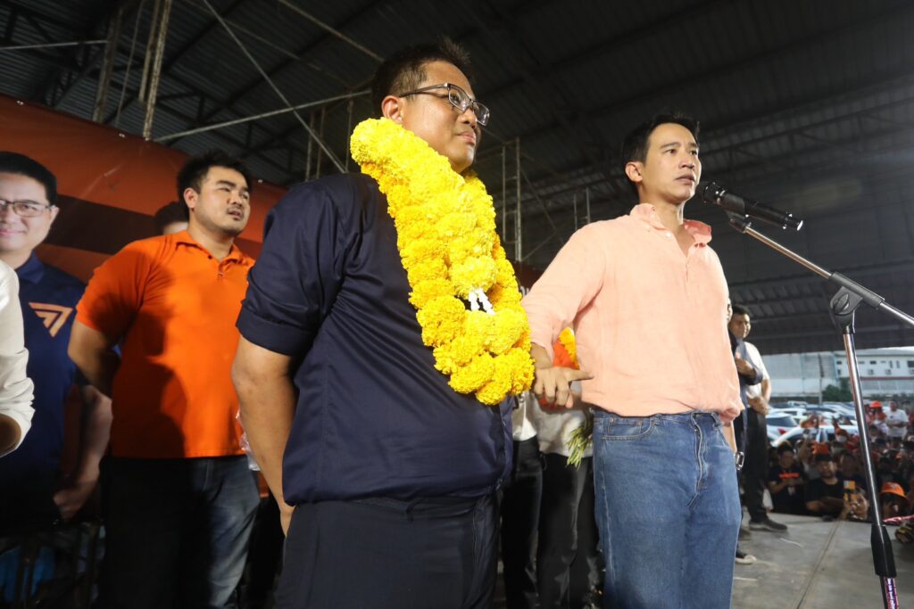 จบแล้วนายชัยธวัชได้เชิญ สส.ระยองทุกเขต และ สส.ภาคตะวันออก พรรคก้าวไกล พร้อมด้วยนายพิธาขึ้นบนเวที
