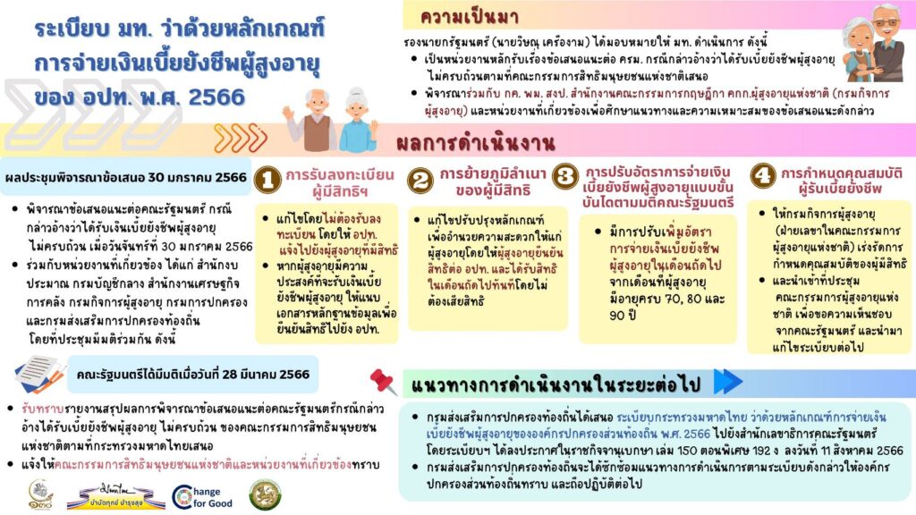 ขอทำความเข้าใจพี่น้องประชาชนผ่านไปยังสื่อมวลชน เพื่อช่วยกันสร้างการรับรู้ข้อมูลที่ถูกต้องกับพี่น้องประชาชนว่า ซึ่งการที่องค์กรปกครองส่วนท้องถิ่นจะจ่ายเงินเบี้ยยังชีพผู้สูงอายุตามระเบียบกระทรวงมหาดไทย ว่าด้วยหลักเกณฑ์การจ่ายเงินเบี้ยยังชีพผู้สูงอายุขององค์กรปกครองส่วนท้องถิ่น พ.ศ. 2566 ให้กับผู้สูงอายุตามที่ระเบียบกำหนดว่า “ต้องเป็นผู้ไม่มีรายได้ หรือมีรายได้ไม่เพียงพอแก่การยังชีพ” นั้น ตามระเบียบฯ กำหนดว่า ให้เป็นไปตามที่คณะกรรมการผู้สูงอายุแห่งชาติ ซึ่งมีกรมกิจการผู้สูงอายุ กระทรวงการพัฒนาสังคมและความมั่นคงของมนุษย์ เป็นฝ่ายเลขานุการ เป็นผู้กำหนด” กระทรวงมหาดไทย ต้องออกระเบียบเพื่อให้องค์กรปกครองส่วนท้องถิ่นสามารถจ่ายเงินให้กับผู้สูงอายุตามหลักเกณฑ์ระเบียบได้ แต่จะจ่ายได้ ต้องเป็นไปตามที่คณะกรรมการผู้สูงอายุแห่งชาติเป็นคนกำหนด เมื่อกำหนดแล้ว องค์กรปกครองส่วนท้องถิ่นจะจ่ายได้ กระทรวงมหาดไทยต้องไปออกระเบียบให้ตรง ให้สอดคล้องกับที่คณะกรรมการผู้สูงอายุแห่งชาติกำหนด ในขณะนี้ ต้องออกระเบียบให้จ่ายได้แต่ทั้งนี้ทั้งนั้นต้องมีหลักเกณฑ์ต่างๆจากคณะกรรมการผู้สูงอายุแห่งชาติกำหนด .-สำนักข่าวไทย