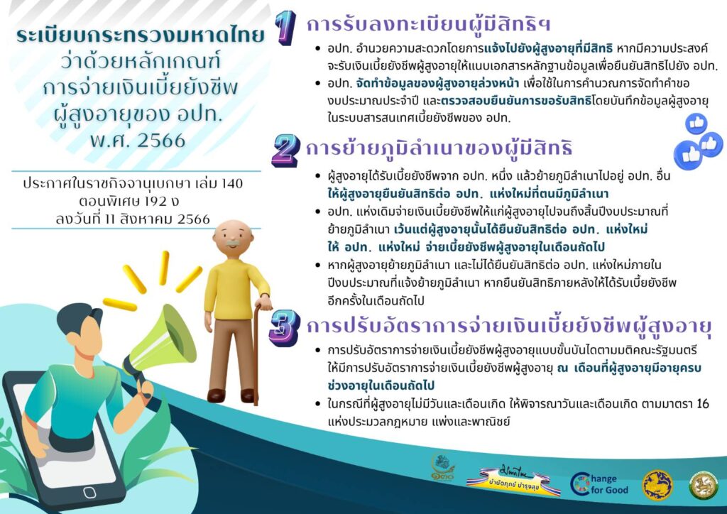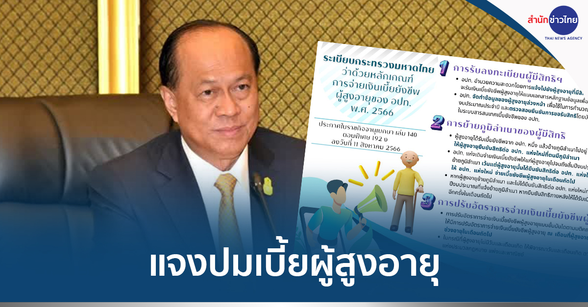 กทม. 14 ส.ค.- มท.1 ชี้แจงการจ่ายเงินเบี้ยยังชีพผู้สูงอายุตามระเบียบ มท. ว่าด้วยหลักเกณฑ์การจ่ายเงินเบี้ยยังชีพผู้สูงอายุขององค์กรปกครองส่วนท้องถิ่น พ.ศ. 2566 ขึ้นอยู่กับคณะกรรมการผู้สูงอายุแห่งชาติกำหนดหลักเกณฑ์