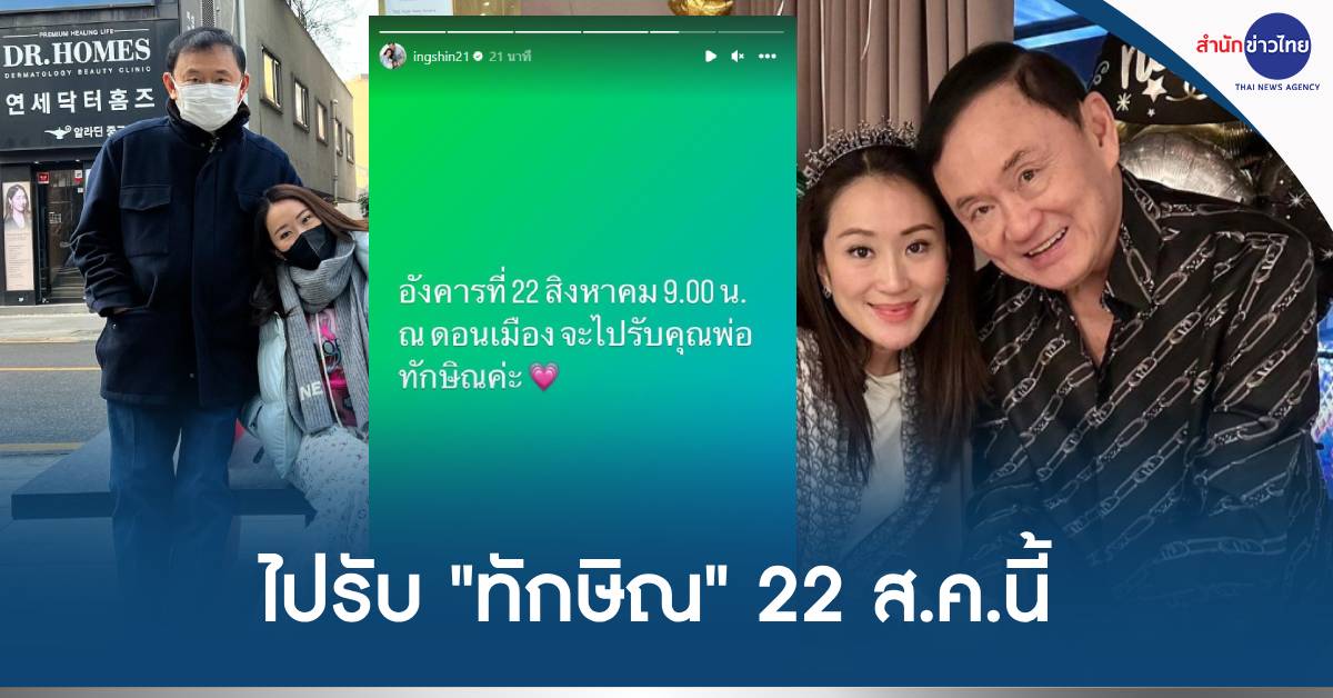 ผู้สื่อข่าวรายงาน น.ส.แพทองธาร ชินวัตร แคนดิเดตนายกรัฐมนตรีพรรคเพื่อไทย ในฐานะลูกสาวของนายทักษิณ ชินวัตร อดีตนายกฯ โพสต์ข้อความผ่านสตอรี่อินสตาแกรมส่วนตัวถึงความคืบหน้าในการเดินทางกลับประเทศของนายทักษิณ โดยระบุว่า “อังคารที่ 22 ส.ค. 9.00 น. ณ ดอนเมือง จะไปรับคุณพ่อทักษิณ”