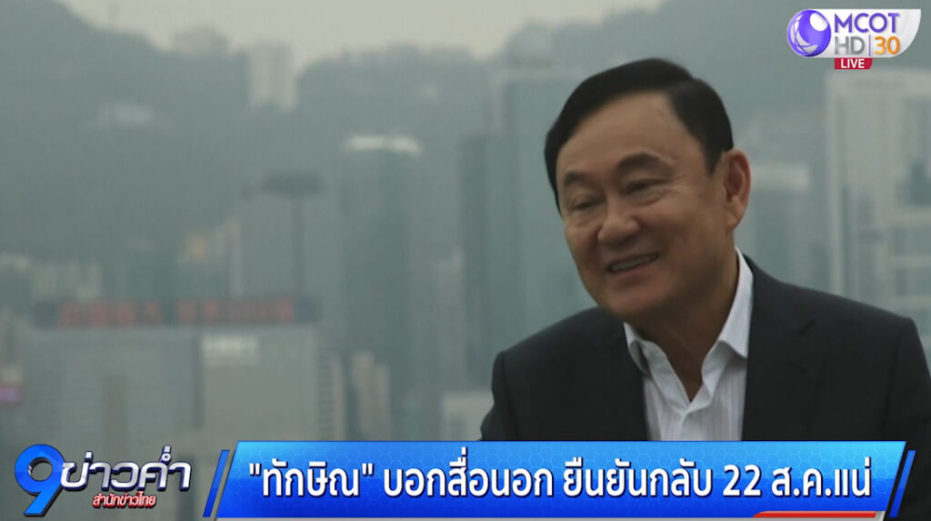 19 ส.ค.-“ทักษิณ” บอกสื่อนอก ยืนยันกลับไทย 22 ส.ค.นี้แน่นอน เผยมีแผนไว้ก่อนแล้ว ไม่เกี่ยวกับโหวตนายกฯ