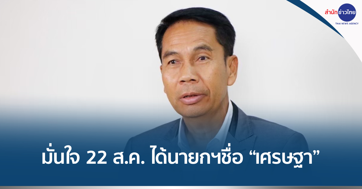 “ตนเชื่อว่าวันที่ 22 สิงหาคมนี้ ได้นายกฯ ชื่อเศรษฐา ทวีสิน เพราะวันนี้สมาชิกรัฐสภาฟังเสียงสังคมอยู่ ซึ่งสังคมวันนี้อยากให้ได้นายกฯ โดยเราผ่านการเลือกตั้งมาเกือบจะ 3 เดือนแล้ว แต่ยังไม่มีนายกฯ และรัฐบาลมาทำงานเสียที ไม่มีใครที่คนจะชอบตรงกันหมดทั้ง 100% หรอก แต่วันนี้ที่สังคมไทยอยากได้คืออยากให้มีนายกฯ และรัฐบาลที่เข้ามาแก้ปัญหาประเทศ เพราะหากปล่อยให้ยืดเยื้อไปไม่น่าจะเป็นผลดีต่อประเทศและประชาชน” นายสุทิน กล่าว .-สำนักข่าวไทย