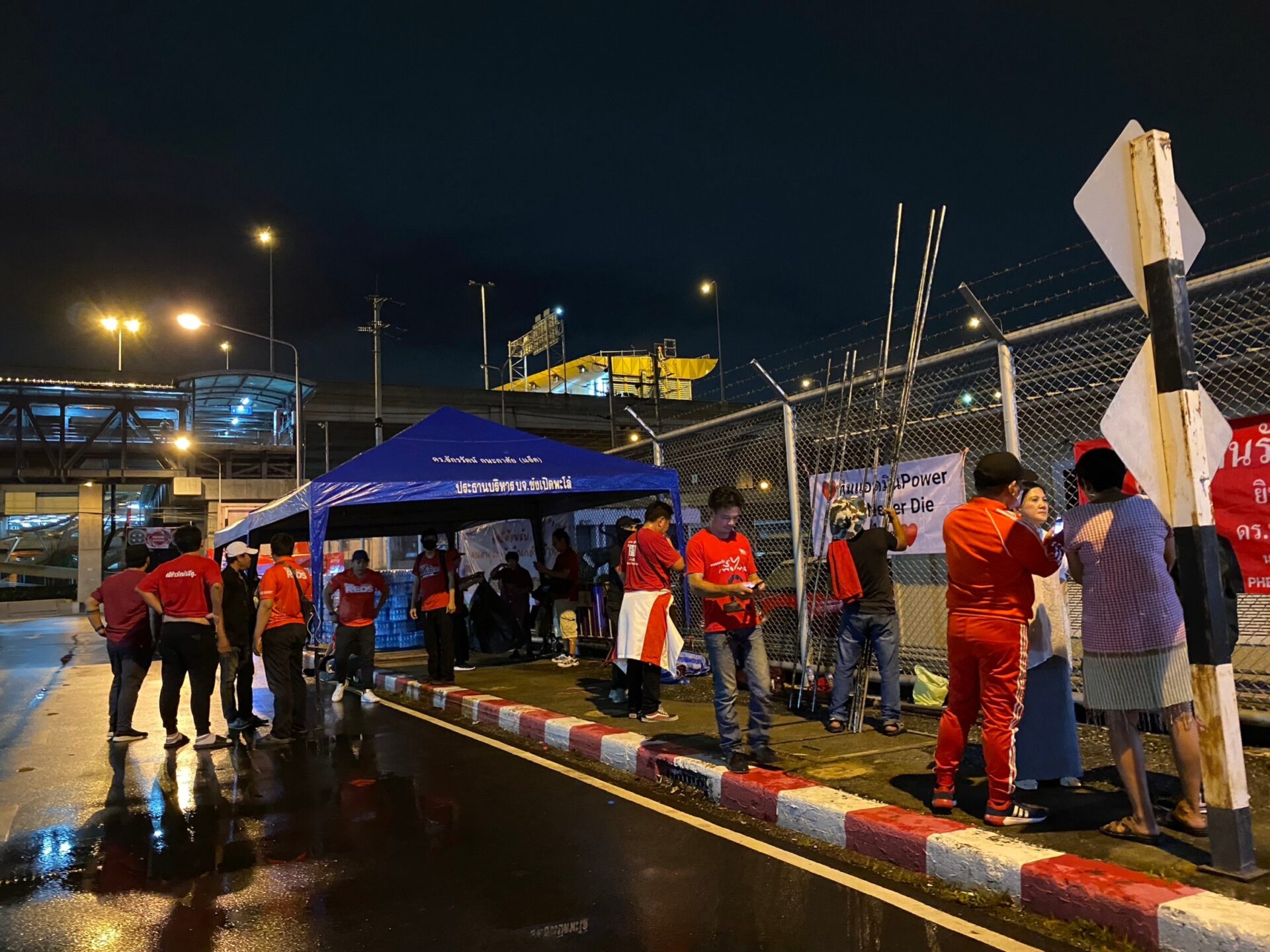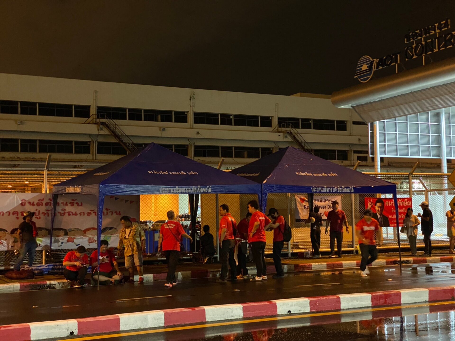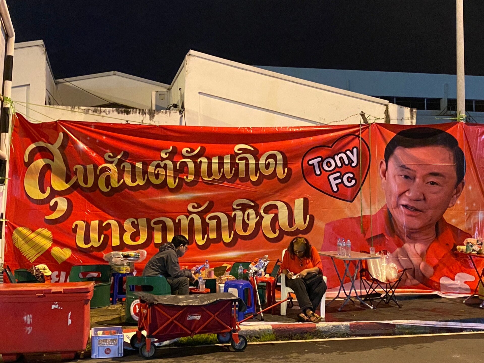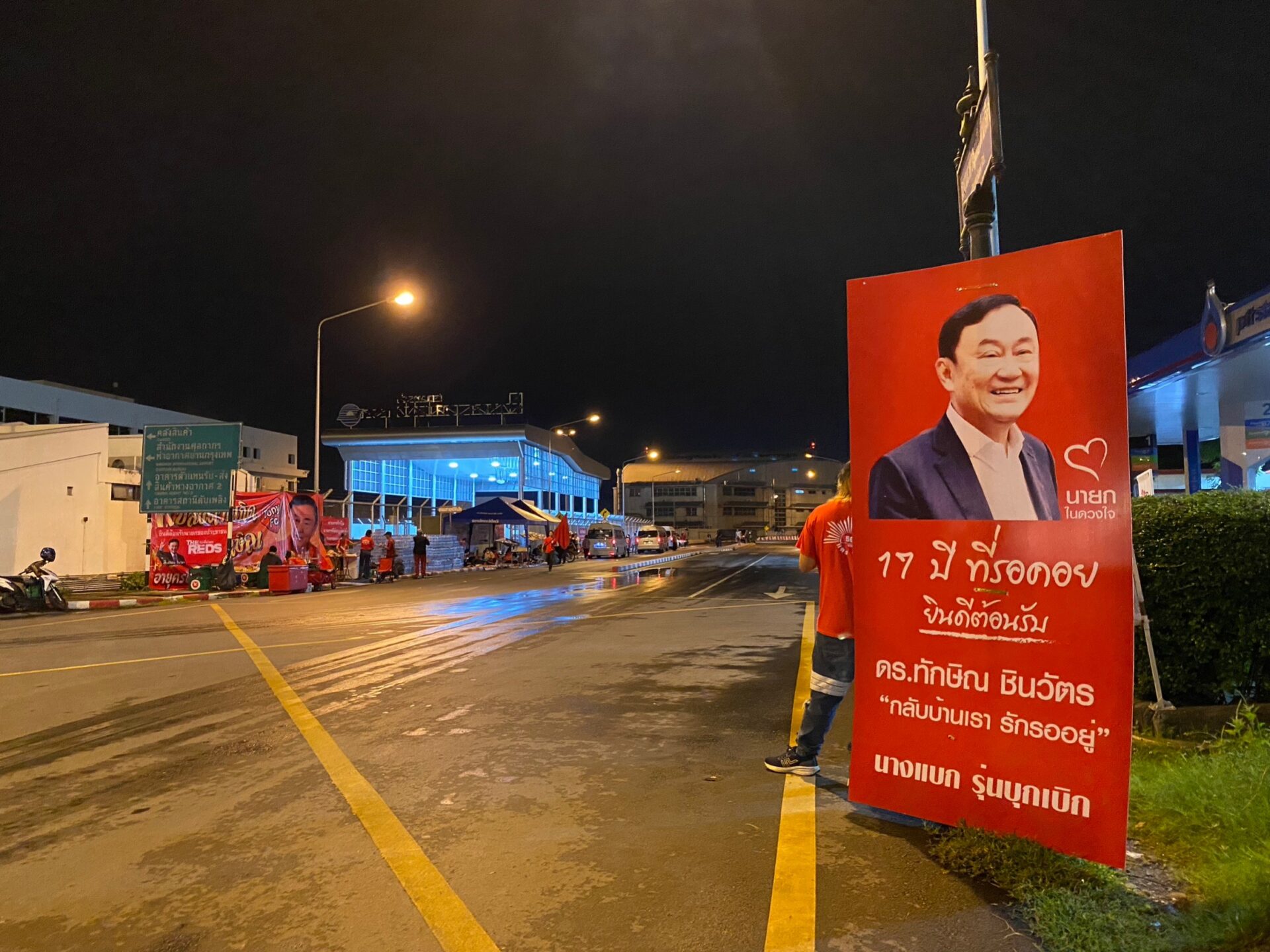 เมื่อเวลา 04.30 น. วันนี้ (22 ส.ค.66) ที่บริเวณปากทางถนนเทวฤทธิ์พันลึก ริมถนนวิภาวดีรังสิต ซึ่งอยู่ไม่ไกลจากทางเข้าอาคารลานจอดเครื่องบินส่วนตัว (MJets) มีมวลชนเสื้อแดงทยอยเดินทางมารอรับนายทักษิณ ชินวัตร อดีตนายกรัฐมนตรี ที่จะบินกลับประเทศไทยด้วยเครื่องบินส่วนตัว ซึ่งตามกำหนดการจะมาถึงท่าอากาศยานดอนเมือง เวลาประมาณ 09.00 น. วันนี้ ขณะที่บางส่วนมาปักหลักกางเต็นท์นอนตั้งแต่เมื่อคืน