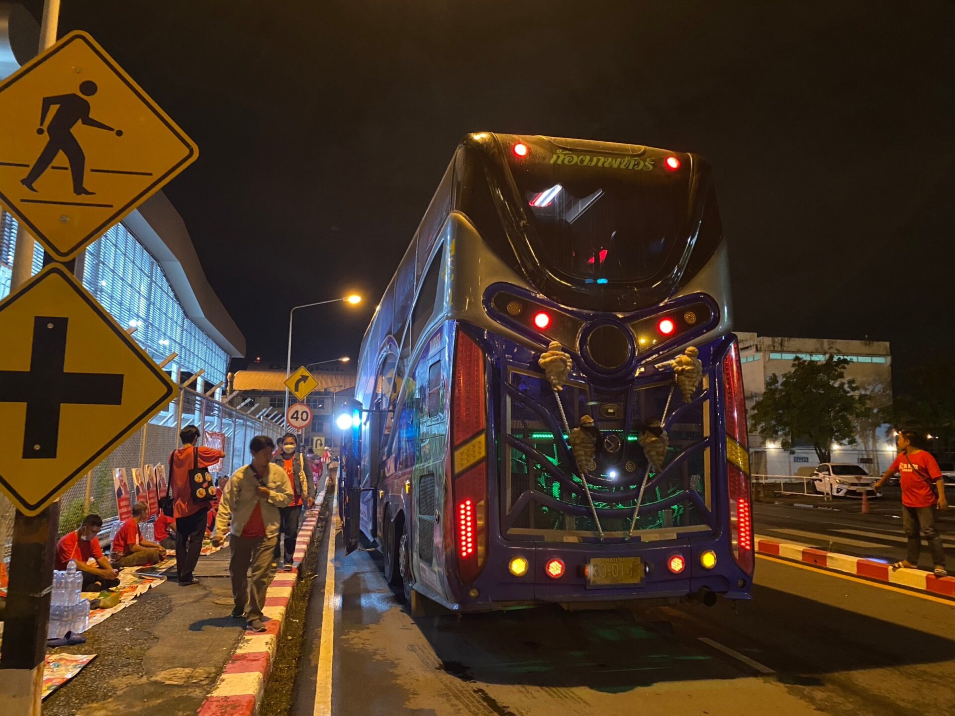 ล่าสุดเมื่อเวลา 05.00 น. รถตู้โดยสารและรถบัส 2 ชั้น จำนวนหลายคัน ทยอยนำมวลชนจากพื้นที่ต่างๆ เข้ามาเพิ่ม. – สำนักข่าวไทย
