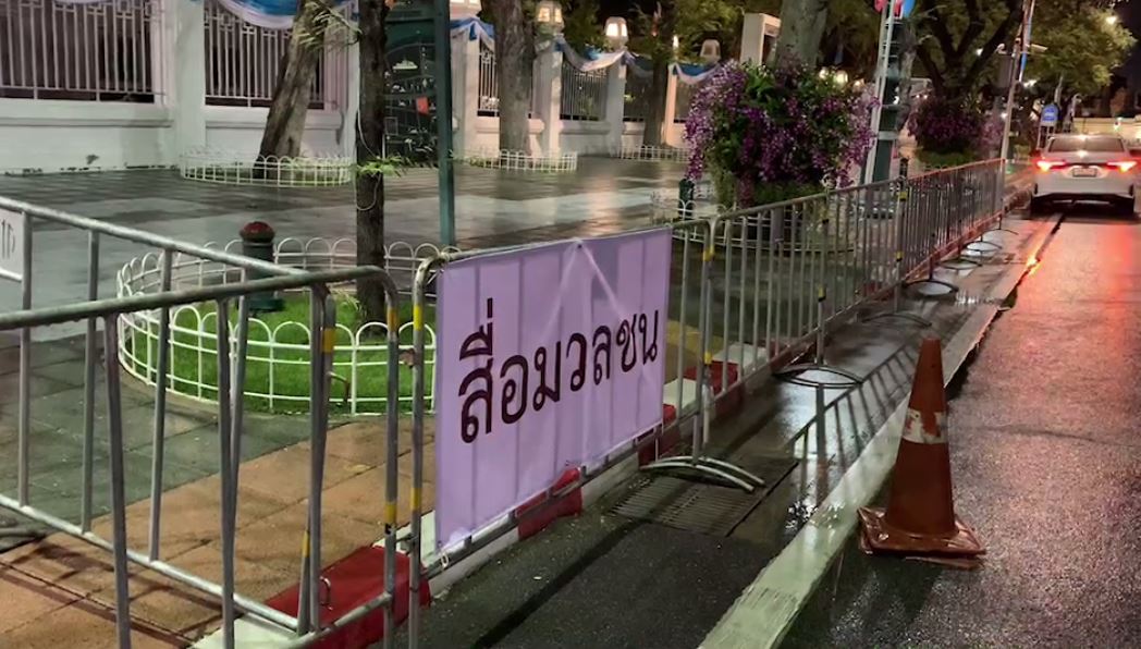 ขณะที่บริเวณหน้าศาลฎีกา ถ.ราชดำเนินใน เมื่อเวลา 04.30 น. เจ้าหน้าที่นำรั้วเหล็กมากั้นริมบาทวิถีตลอดแนวรั้วของศาล โดยมีการจัดแบ่งพื้นที่ไว้สำหรับประชาชนและสื่อมวลชน เพื่อความเป็นระเบียบ และจะมีการวางกำลังดูแลความปลอดภัยเต็มรูปแบบในช่วงเช้าวันนี้ (22 ส.ค.66). – สำนักข่าวไทย