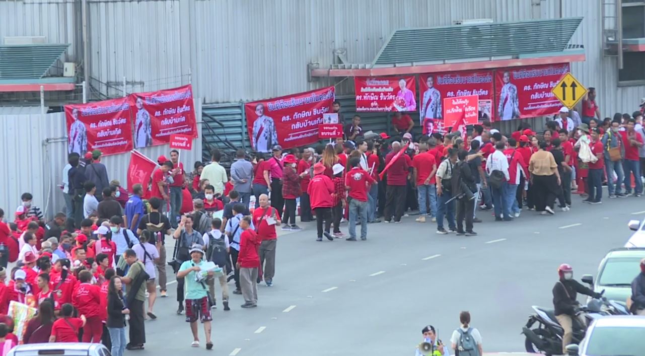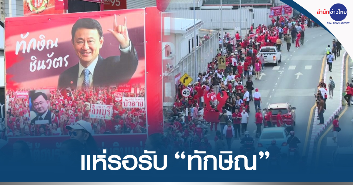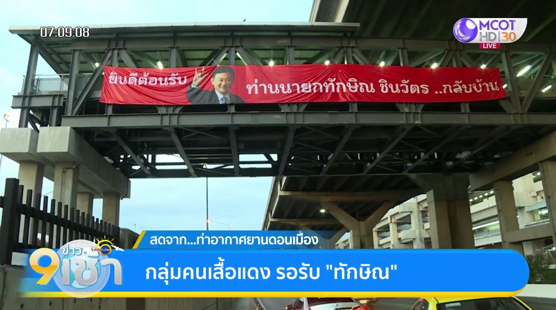 กลุ่มมวลชนเสื้อแดงทยอยปักหลักรอรับนายทักษิณ ชินวัตร อดีตนายกรัฐมนตรี ซึ่งมีกำหนดเดินทางถึงท่าอากาศยานดอนเมือง เวลาประมาณ 09.00 น. วันนี้ (22 ส.ค.66) โดยที่บริเวณใกล้กับอาคารลานจอดเครื่องบินส่วนตัว (MJets) มีมวลชนทยอยเดินทางมาอย่างต่อเนื่อง