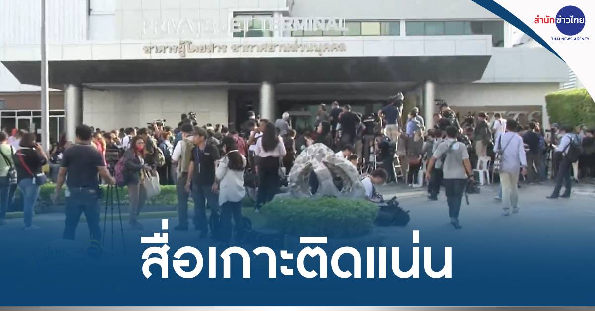 ดอนเมือง 22 ส.ค.-สื่อเกาะติดแน่นที่อาคารผู้โดยสารส่วนบุคคล (MJETS) ท่าอากาศยานดอนเมือง จับตา “ทักษิณ” กลับไทย มวลชนคึกคัก